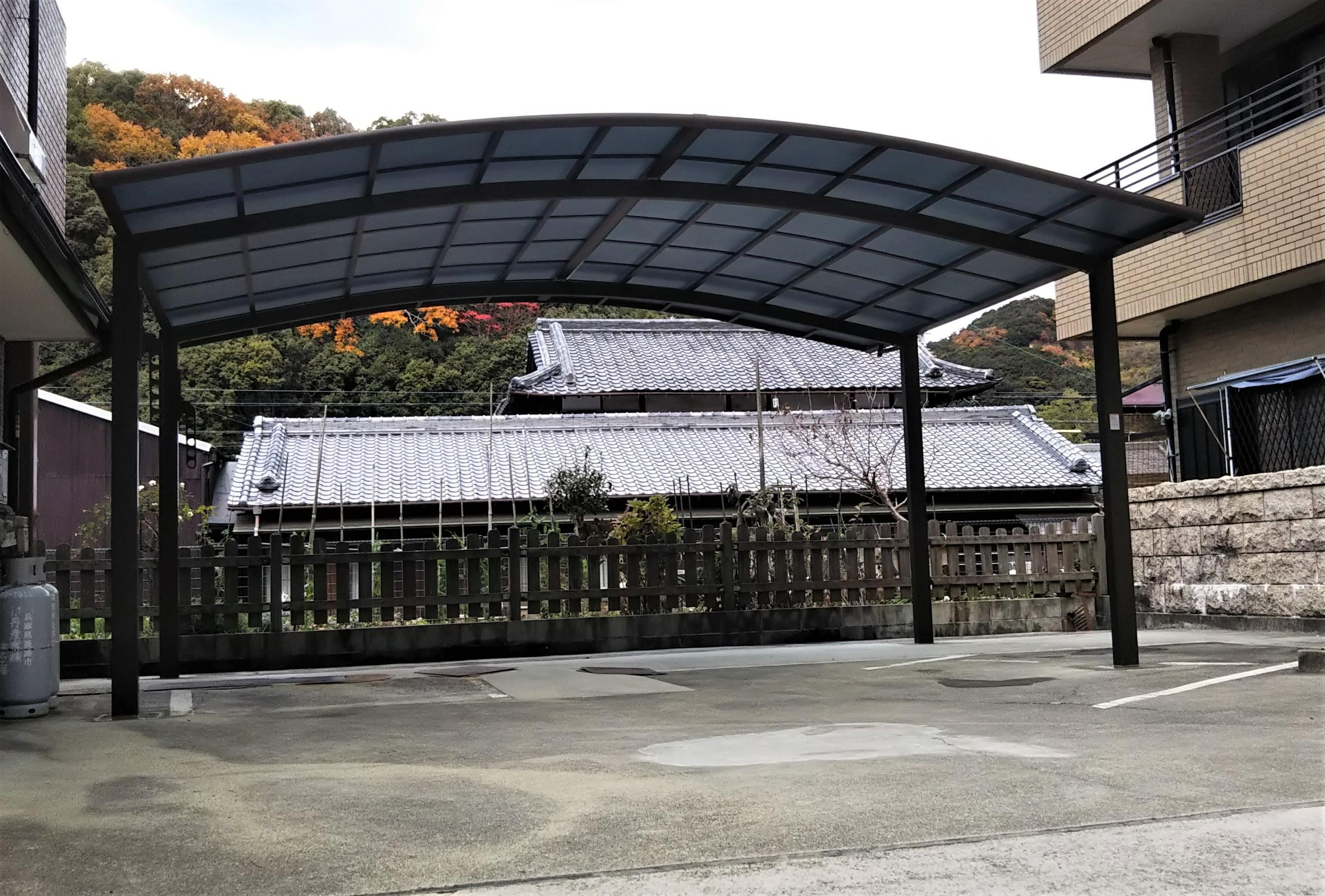 耐風圧強度 風速=42M/秒のカーポートを採用。 建物の外観イメージに合わせて、Rタイプ・オータムブラウン 駐車場面積が広く、ゆったりとして、落ち着いた雰囲気で仕上がっています。