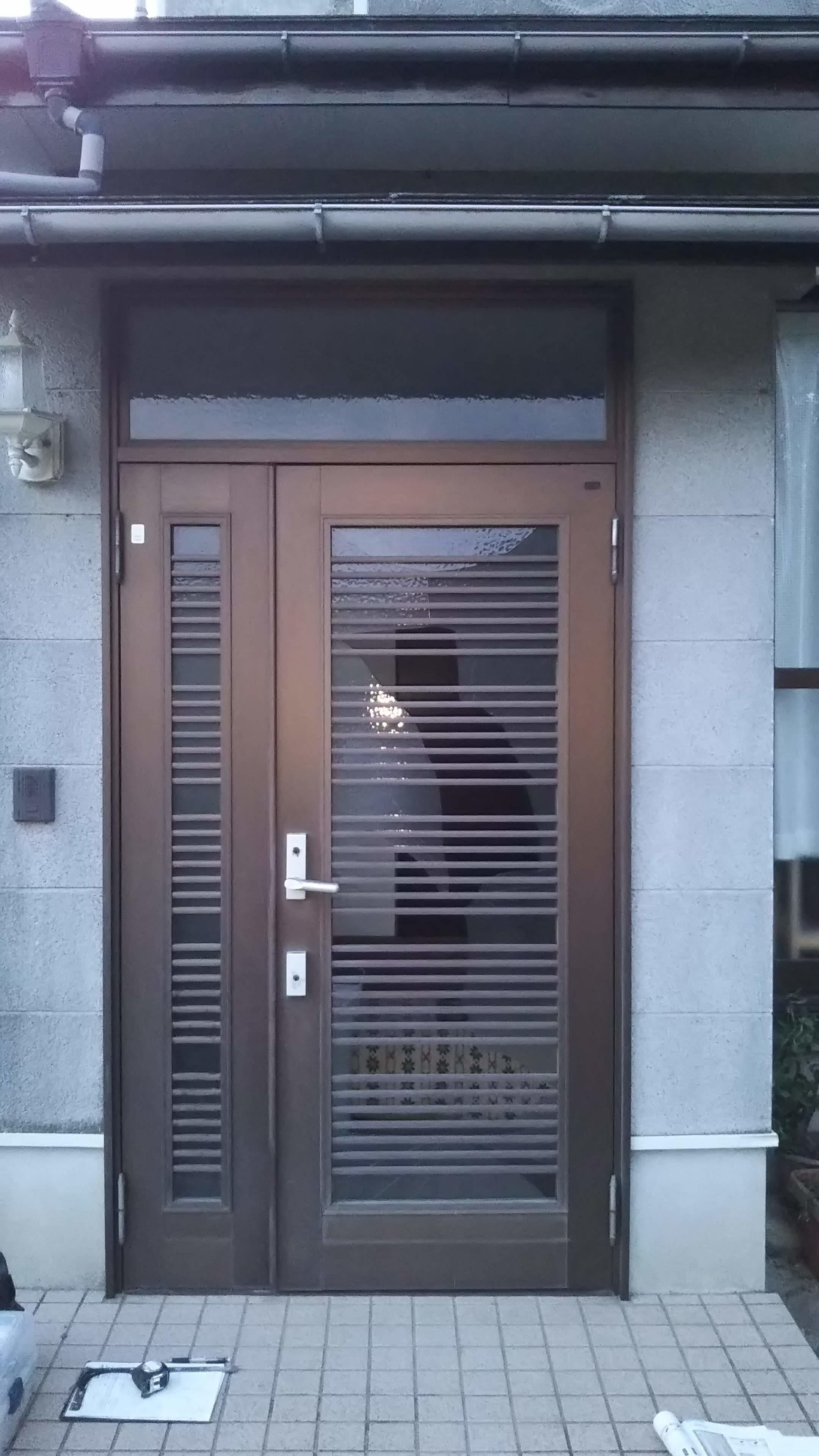 台風で玄関ドアは破損し、取り替えました。リフォーム用の玄関ドアなので1日で施工出来ました。玄関廻りのイメージも変わりました。