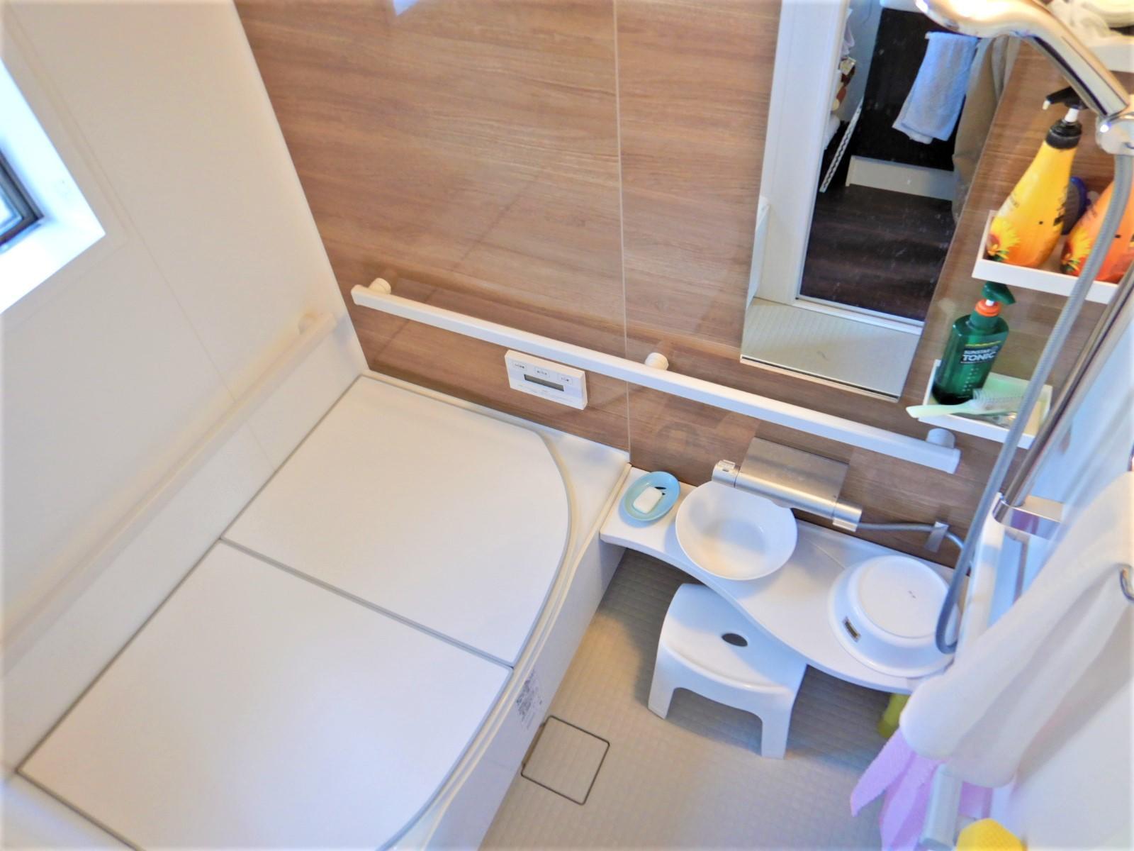 ユニットバスからユニットバスへ取替した施工事例です。 取り外せてまる洗いできるカウンターと床と排水溝でお掃除がラクになりました。 また浴槽がゆったりしているので、ひろびろお湯に浸かれます。