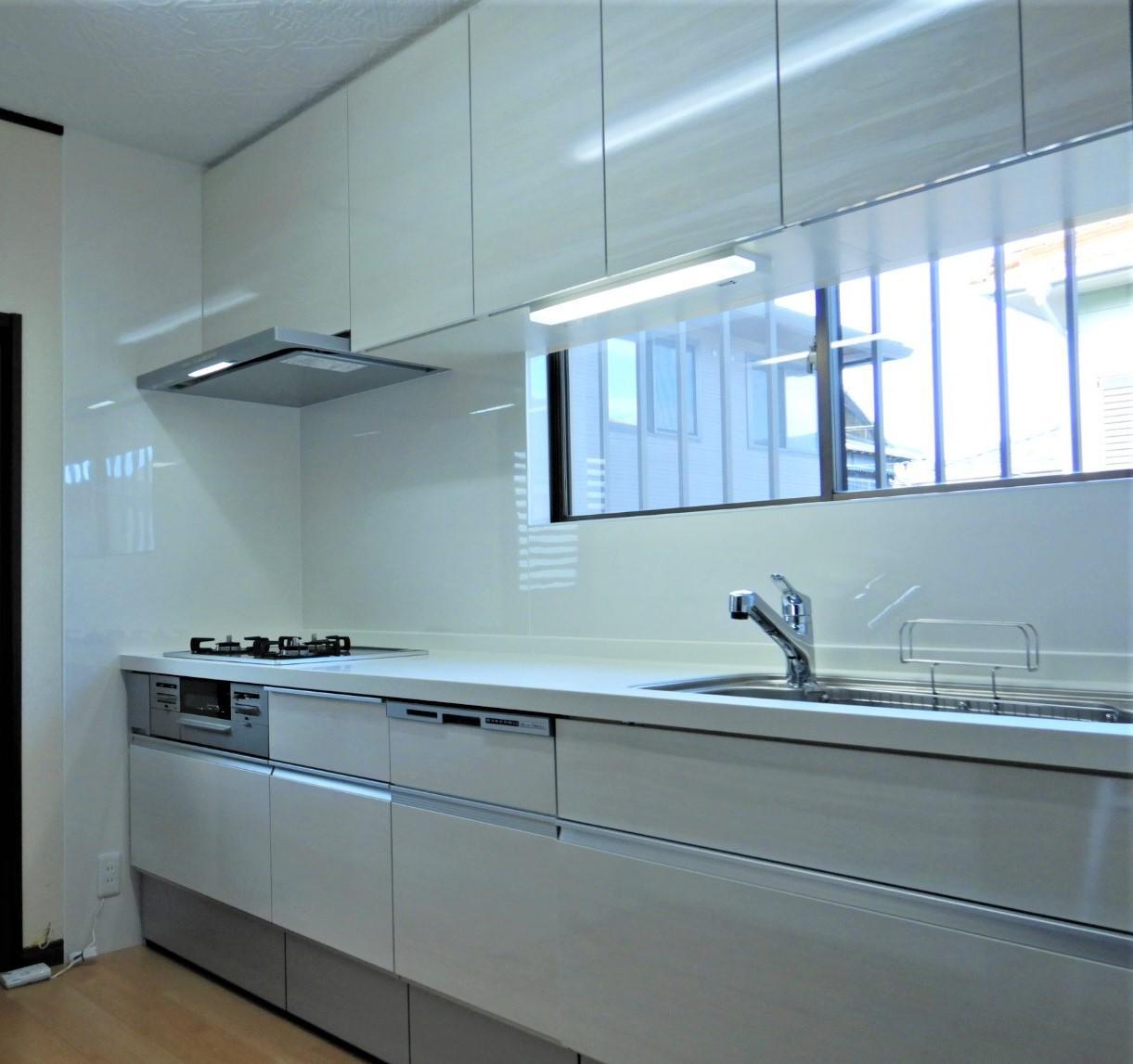 セクショナルキッチンからシステムキッチンへ取替した施工事例です。 収納スペースも増え、食器洗浄機を取り付けたので家事の負担も軽くなります。 また、白を基調にしたのでとても明るく、スッキリした印象になりました。