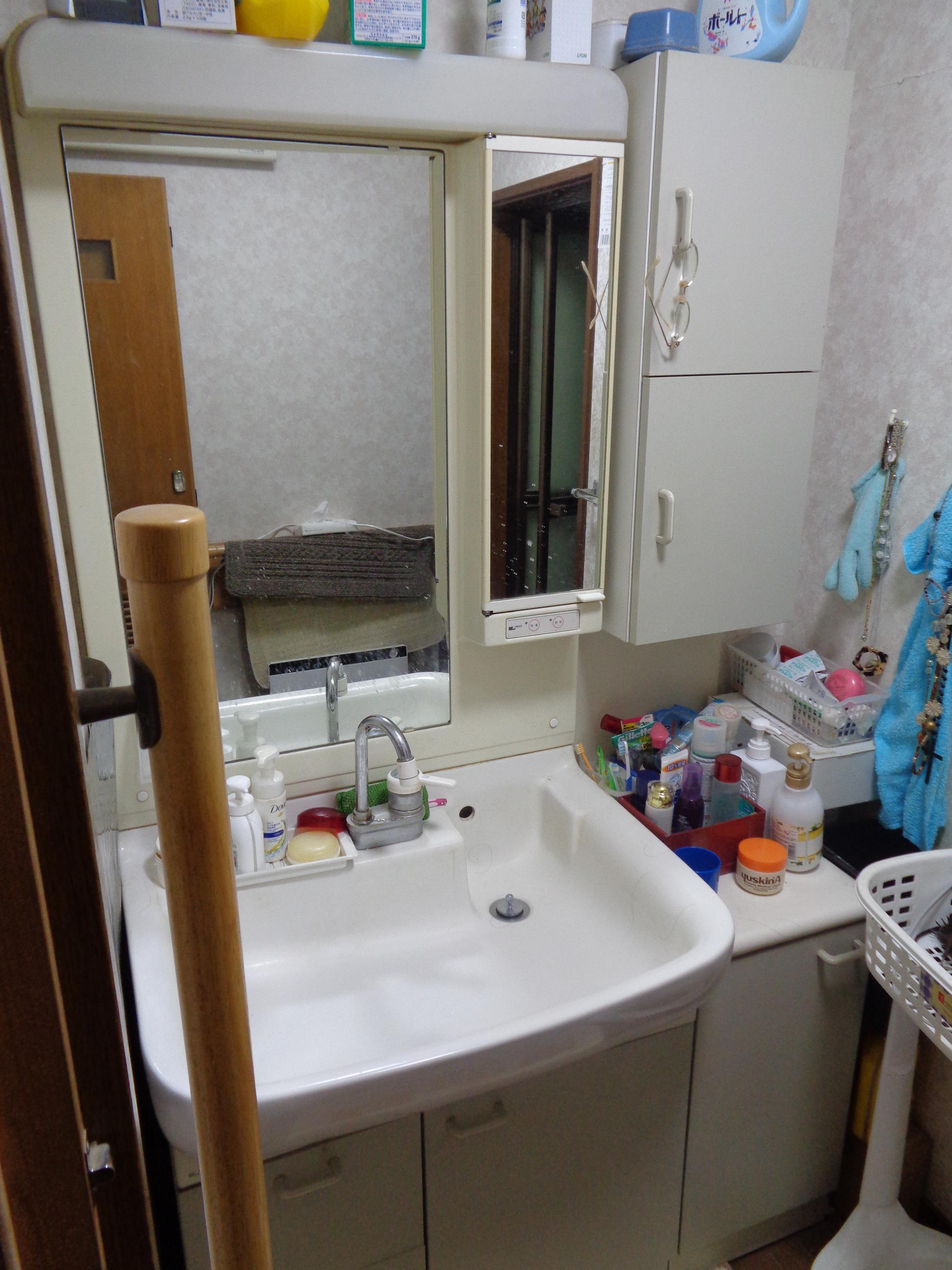 ○メーカー/商品:リクシル/洗面台LC750と収納W450、 高須産業/グラファイトヒーター