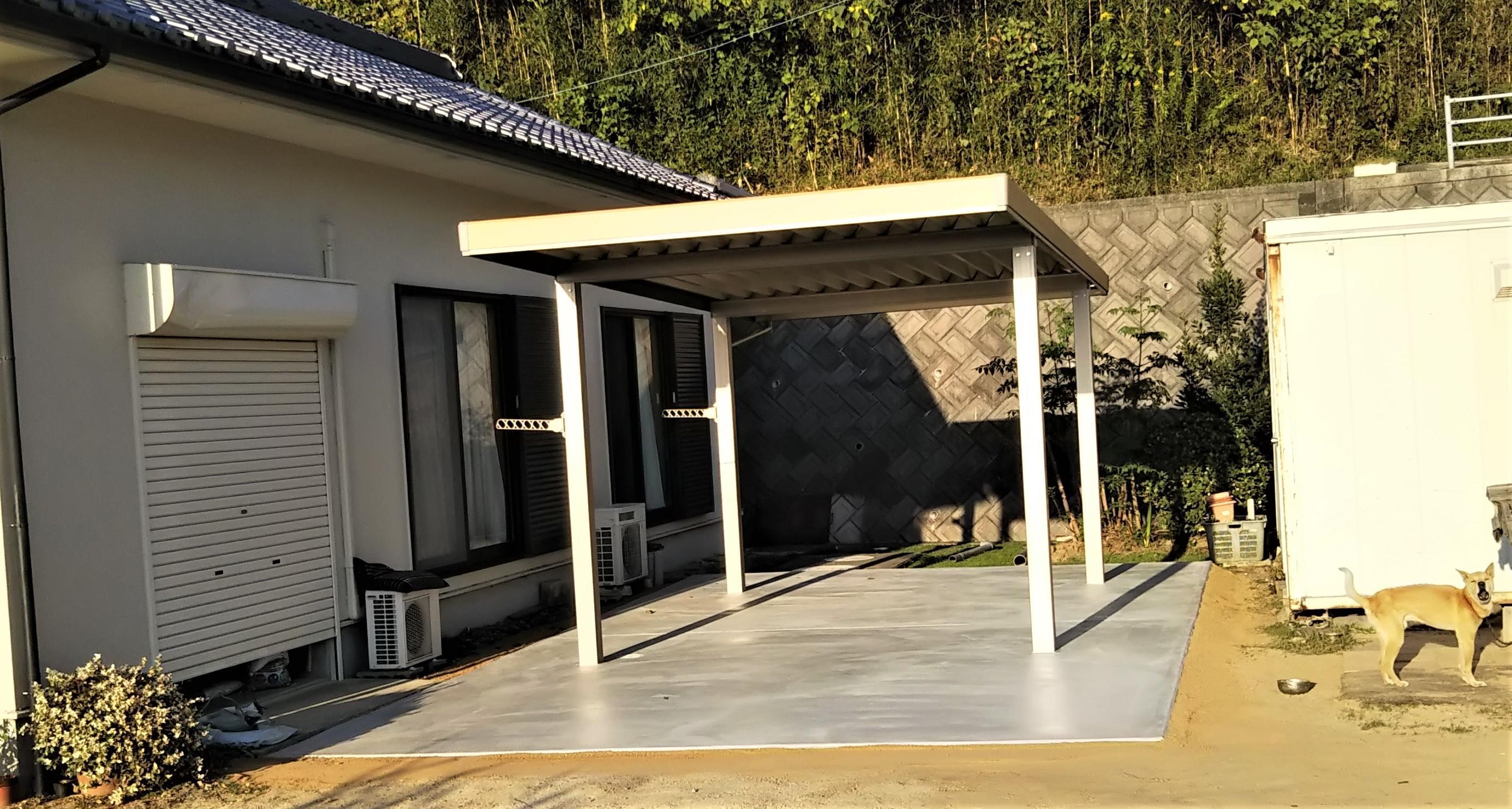 土間コンクリート打ちも合わせてしました。 風当たりが強いですが、見晴らしがとても いいところですので、このカーポートは安心です。