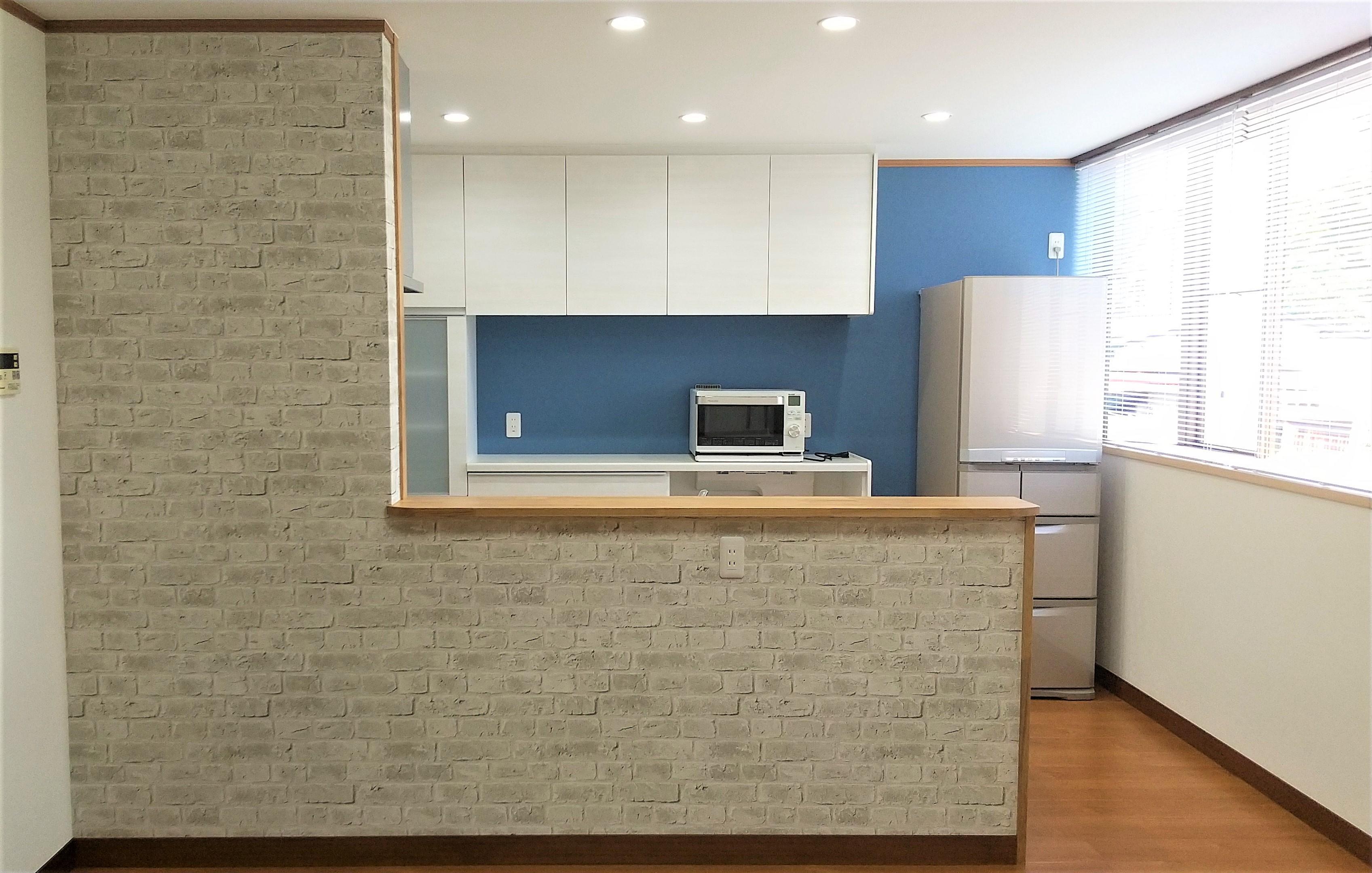 古くなったキッチンを取り替えてレイアウト変更し内装もリフォームした事例です。