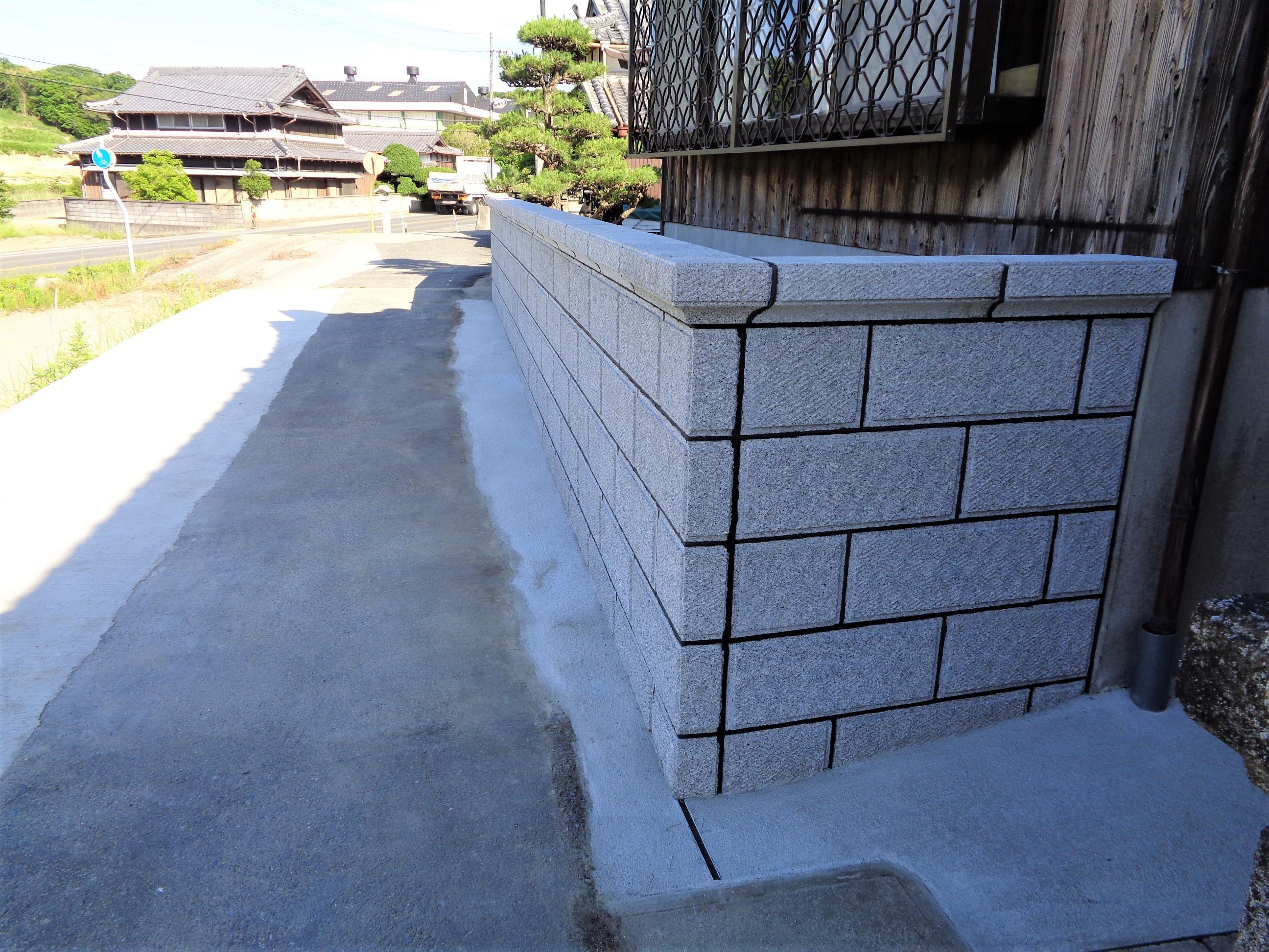 剪定に困った生垣を伐採して化粧ブロックを積んだ事例です。敷地の区切りが出来て 管理がし易くなりました。