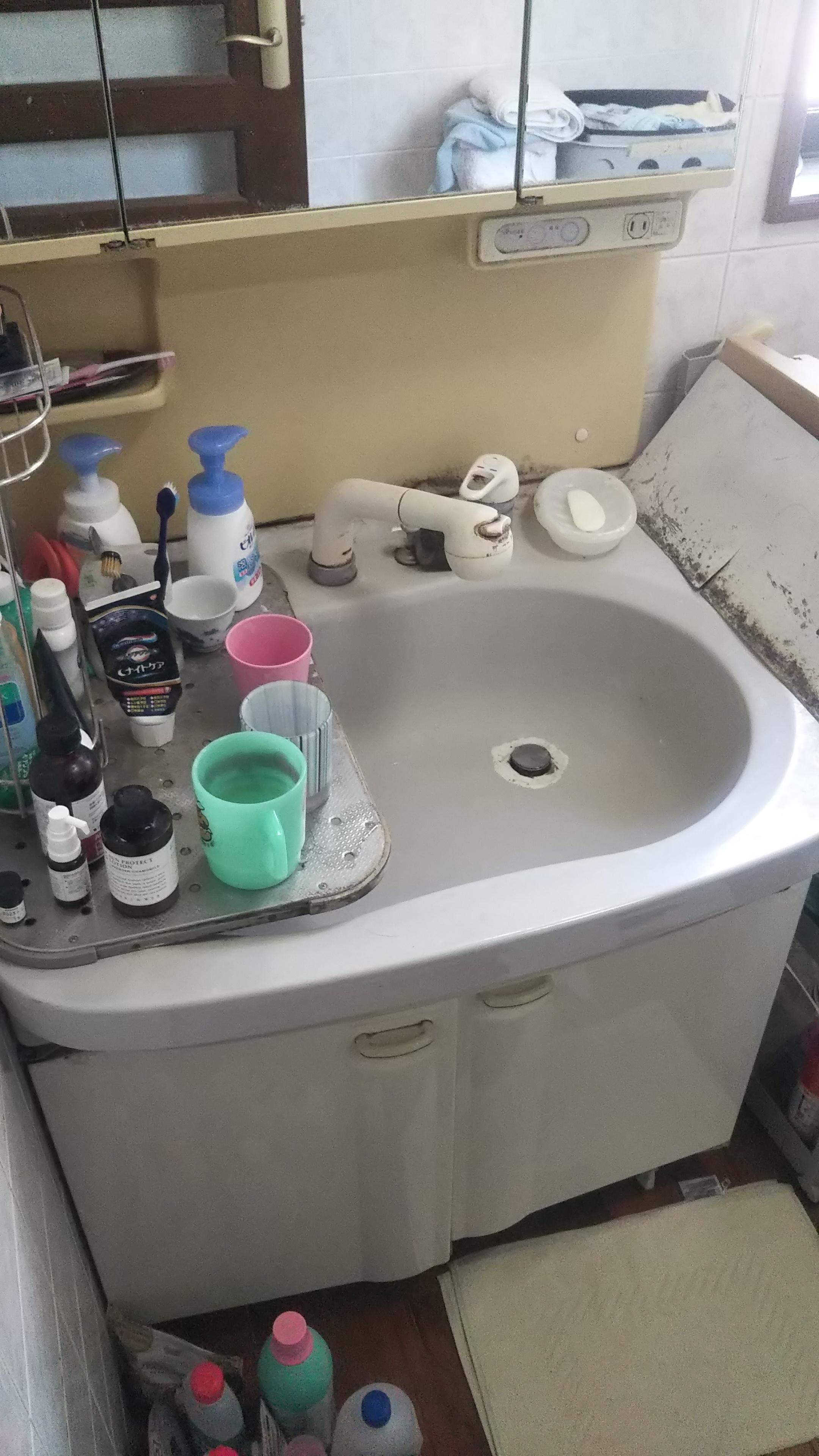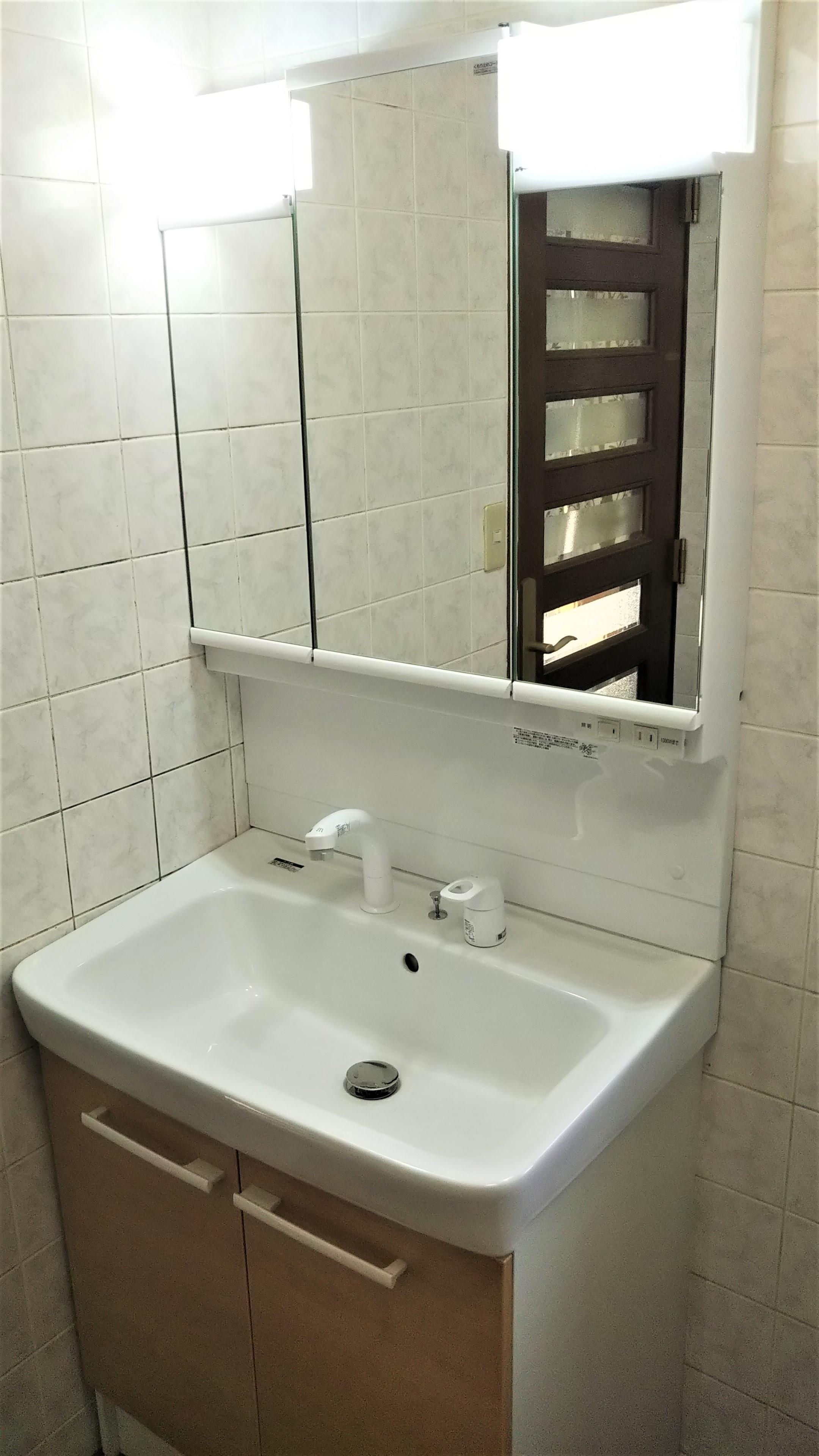 古くなった洗面台を交換した事例です。交換前の洗面台は色褪せていたのでスッキリ清潔感がでました。
