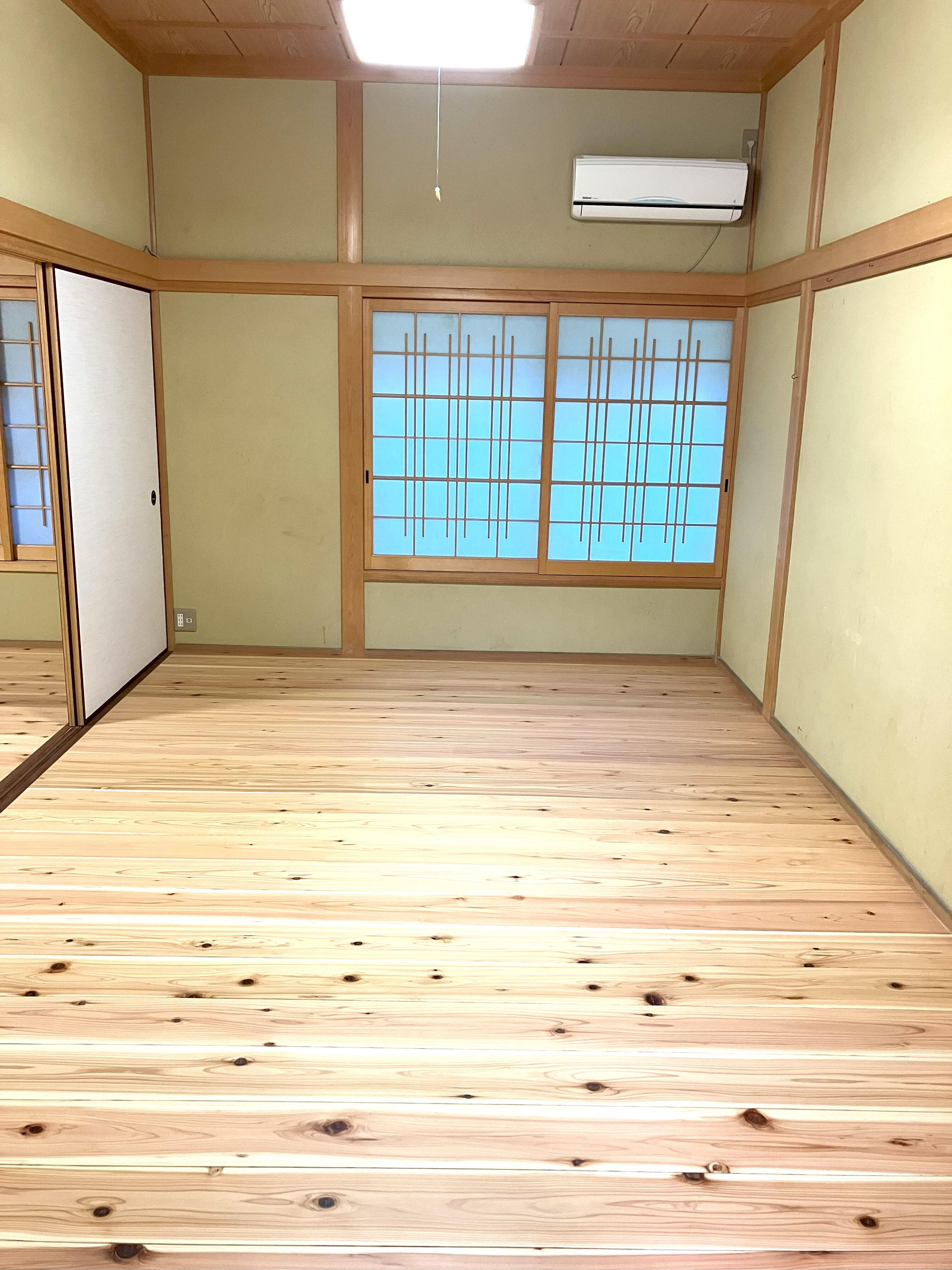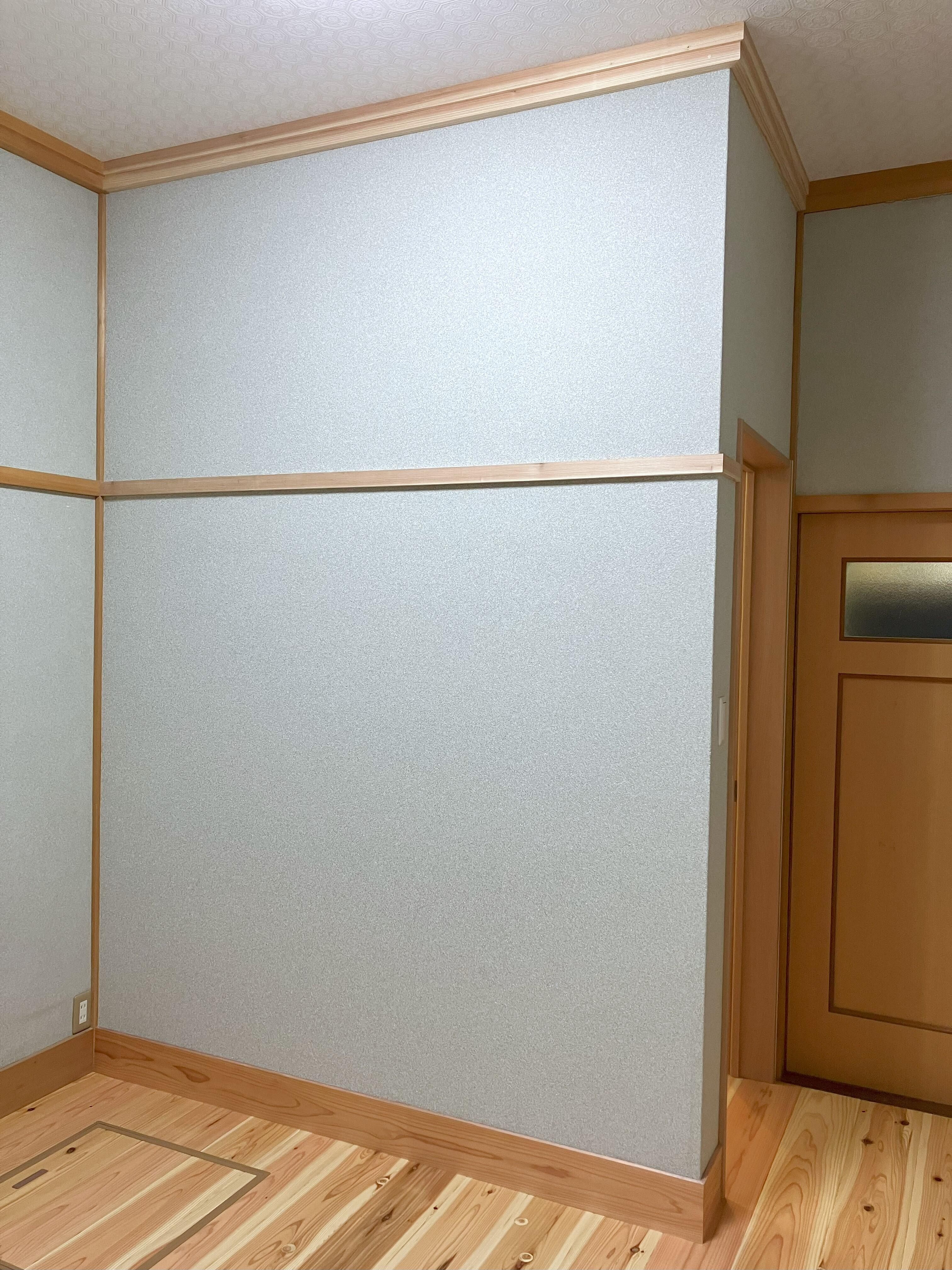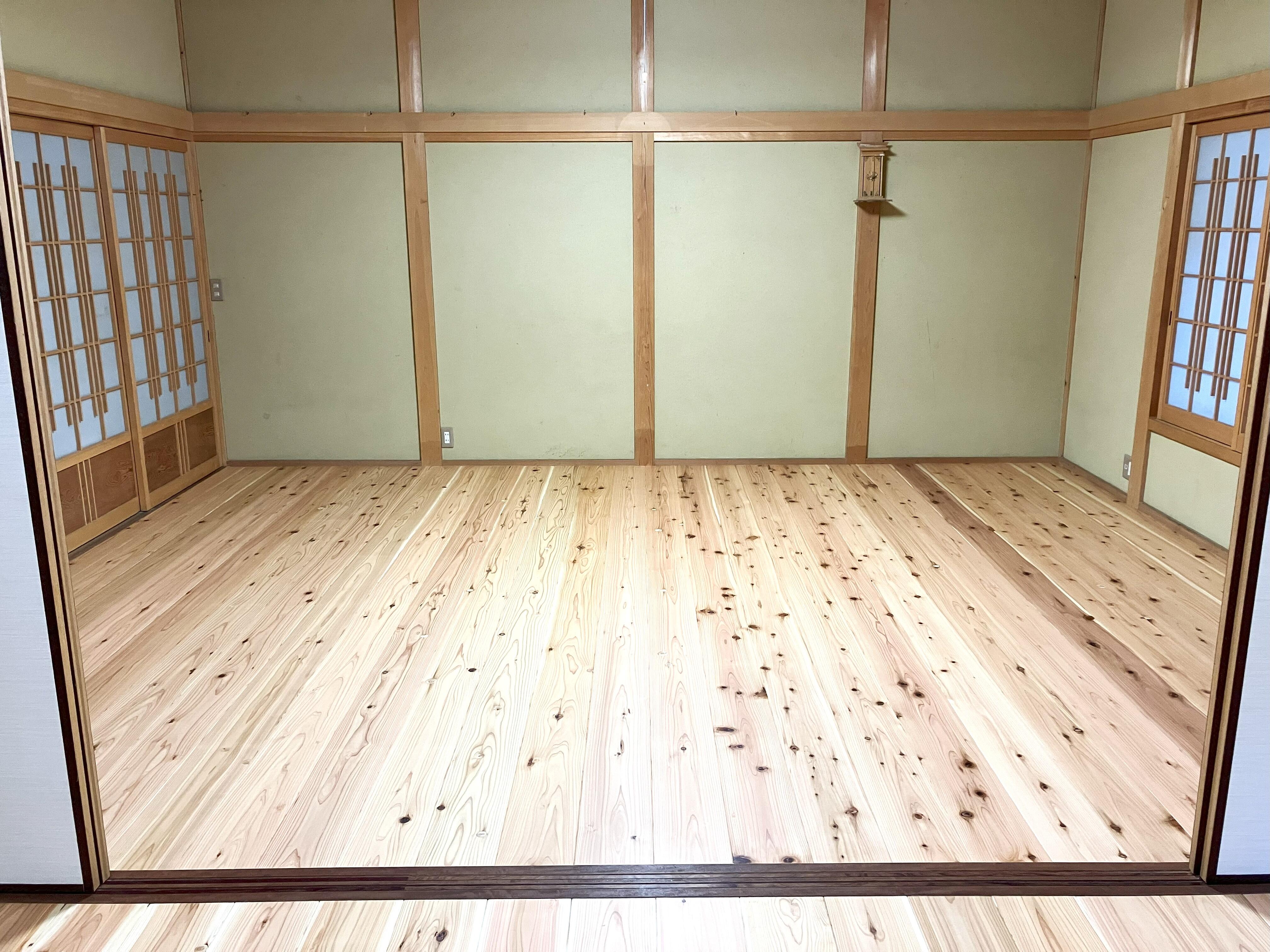 和室を畳からフローリング床へリフォームすることにより、和モダンな空間へ変身を遂げました。 使いこなすのが難しい和室も床を変えるだけで、空間の使用用途が大幅に広がります。 居間も部屋全体のデザインテイストに合わせ、設備を新設することによりまとまりのある空間になりました。