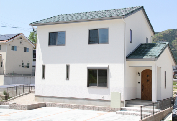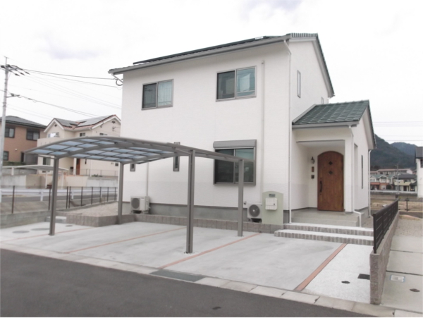 可愛いお家に合わせ外構工事までされていたY様邸。広い駐車場に2台分のカーポートを設置されました。