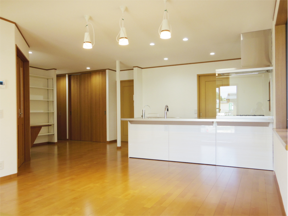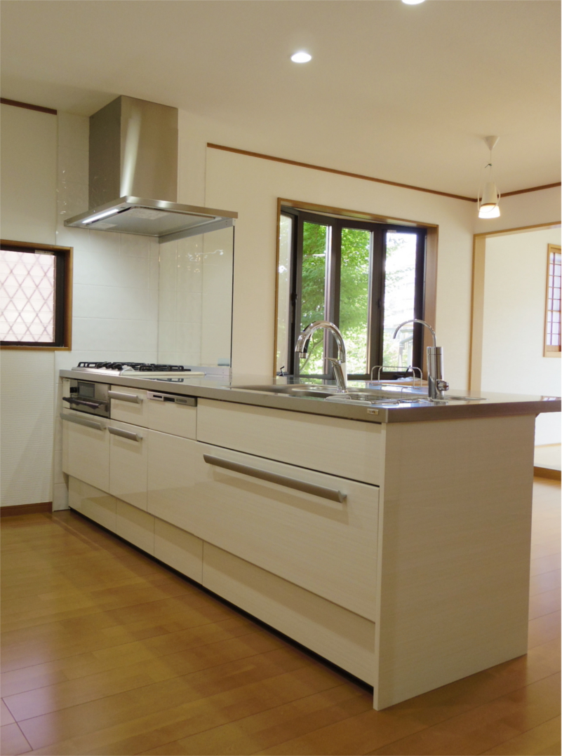 中古住宅をご購入後、E様の理想のお住まいにリノベーションされました.。.:*・゜☆ LDKを広く収納たっぷりに改装され、これからはご自慢のキッチンで毎日のお料理が楽しみですね。 洋室の一部屋も納戸とクローゼットに変わり、お洋服などの収納が便利になりました。