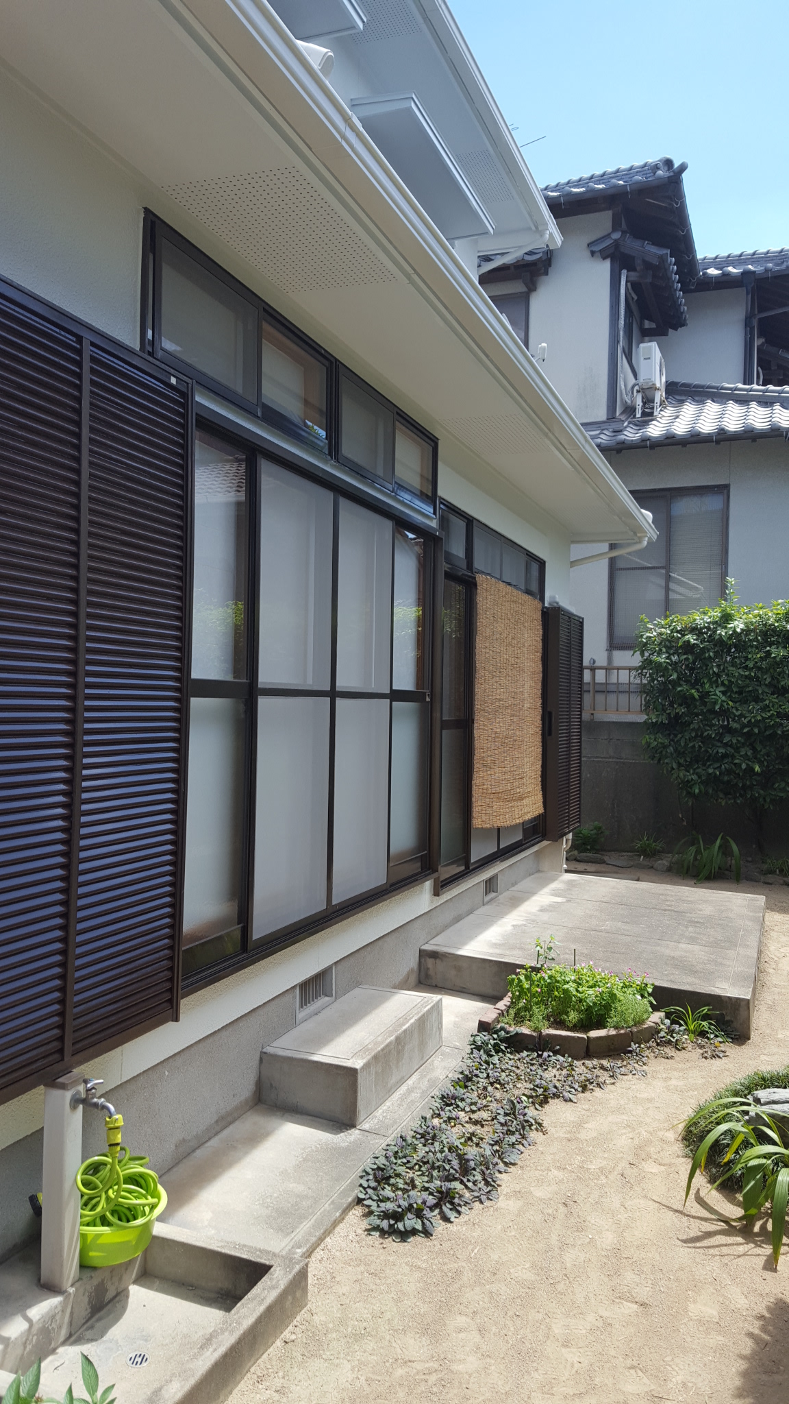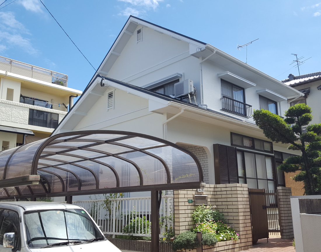 外壁の色を塗り替えられ、瓦もスマートに。 軽量瓦に取り換えられ、耐震対策も万全です。 見た目がぐっと明るくなり、以前とは違うお住まいのようです。