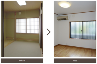 少々暗い印象だったお部屋は、以前は納戸として使用されていたスペース。こちらも床のフローリングや壁紙の貼替などで、今までとは違う明るい印象のお部屋になりました*:.。☆