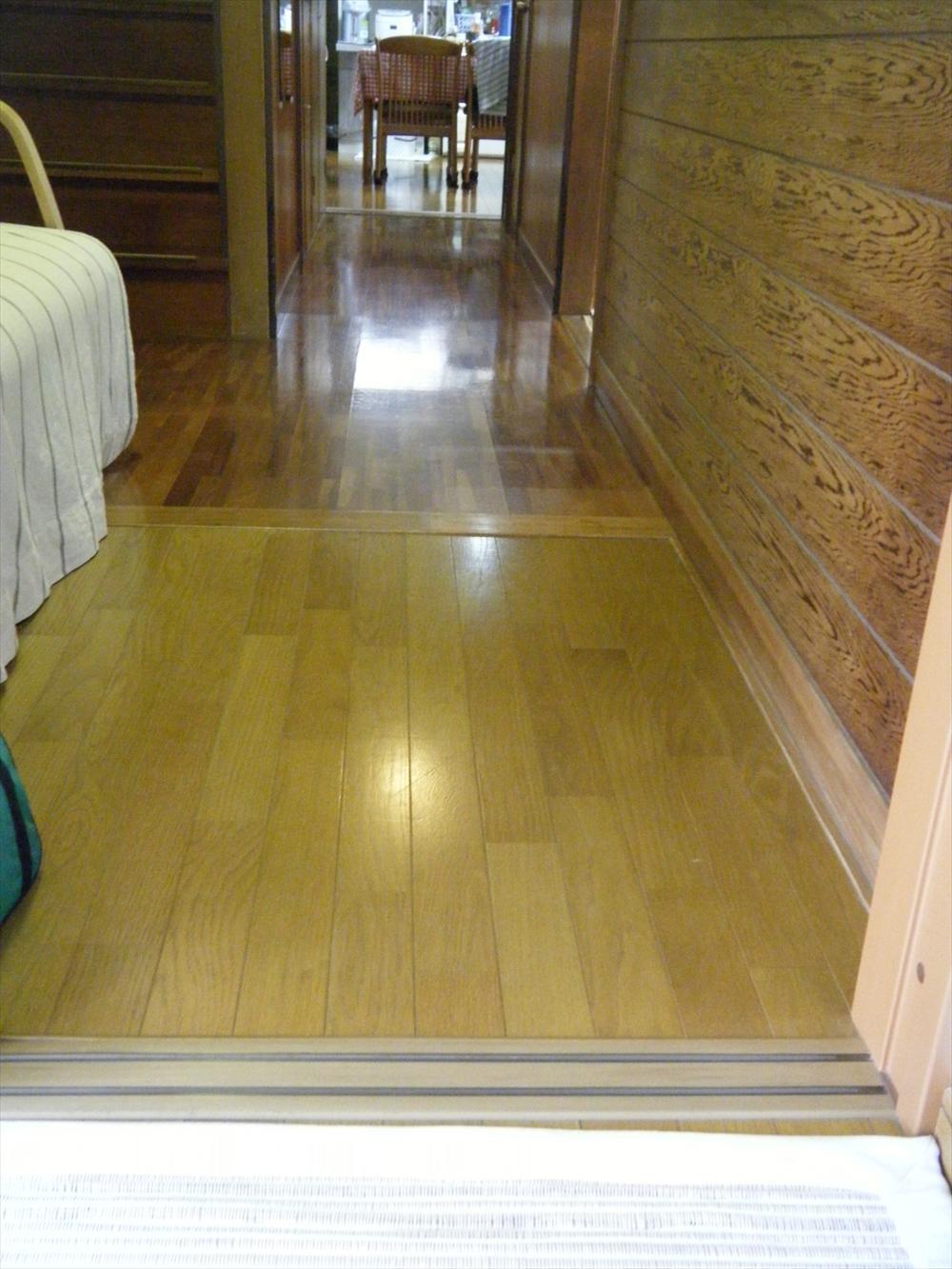 床が部分的に沈むようになり、リフォームされることになった廊下。 増築されたお部屋との境目に出来た少しの段差もなくなり、これで安心して歩けるようになりました*:.。☆