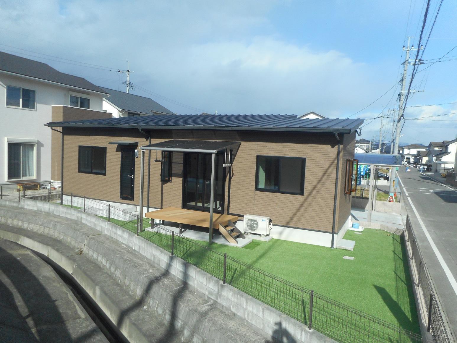 新築のお住まいをご購入されたI様。 これからの使い勝手を考えて、ウッドデッキを設置されました。 砂地だった地面には防草シートと芝生を*:.。☆ これまでの外観とは全く違う、鮮やかなグリーンがまぶしいお住まいに*:.。☆ 防草シートを先に貼っていますので、これからのお庭の管理もだいぶ楽になられました*:.。☆