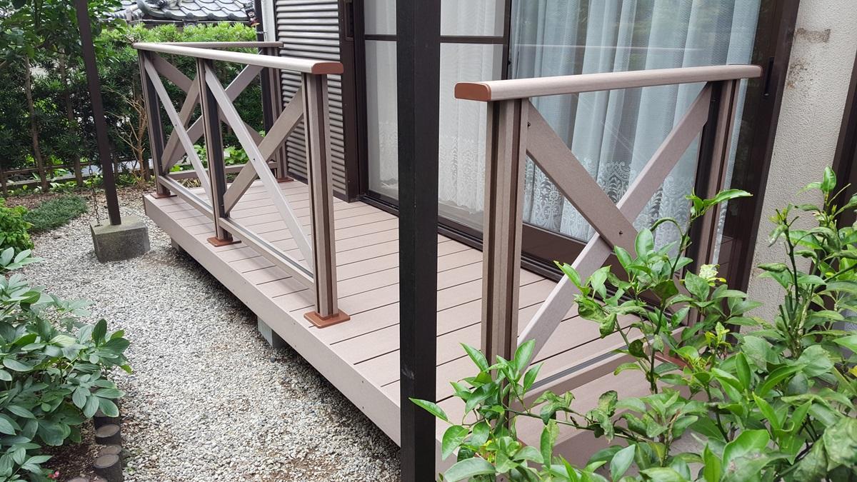 長年のお住まいに当初から取り付けられていたウッドデッキ。 木製だった為、シロアリ被害や雨風による腐食でかなり傷んだ状態に。 樹脂製のウッドデッキに取替を行い、これからは外に出るのが楽しみなお住まいになりました*:.。☆