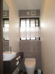 024 暗いトイレをシックな空間に 佐賀市 サティスS タンクレストイレ エコカラット アッパーキャビネット
