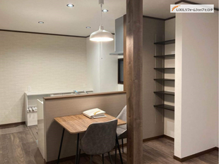 お打ち合わせテーブルにて、リフォームのご相談を承ります。キッチンや浴室などの水廻りや間取り改装など、ご要望をじっくり伺いながら最適なプランをご提案いたします。リノベーションもお任せください。