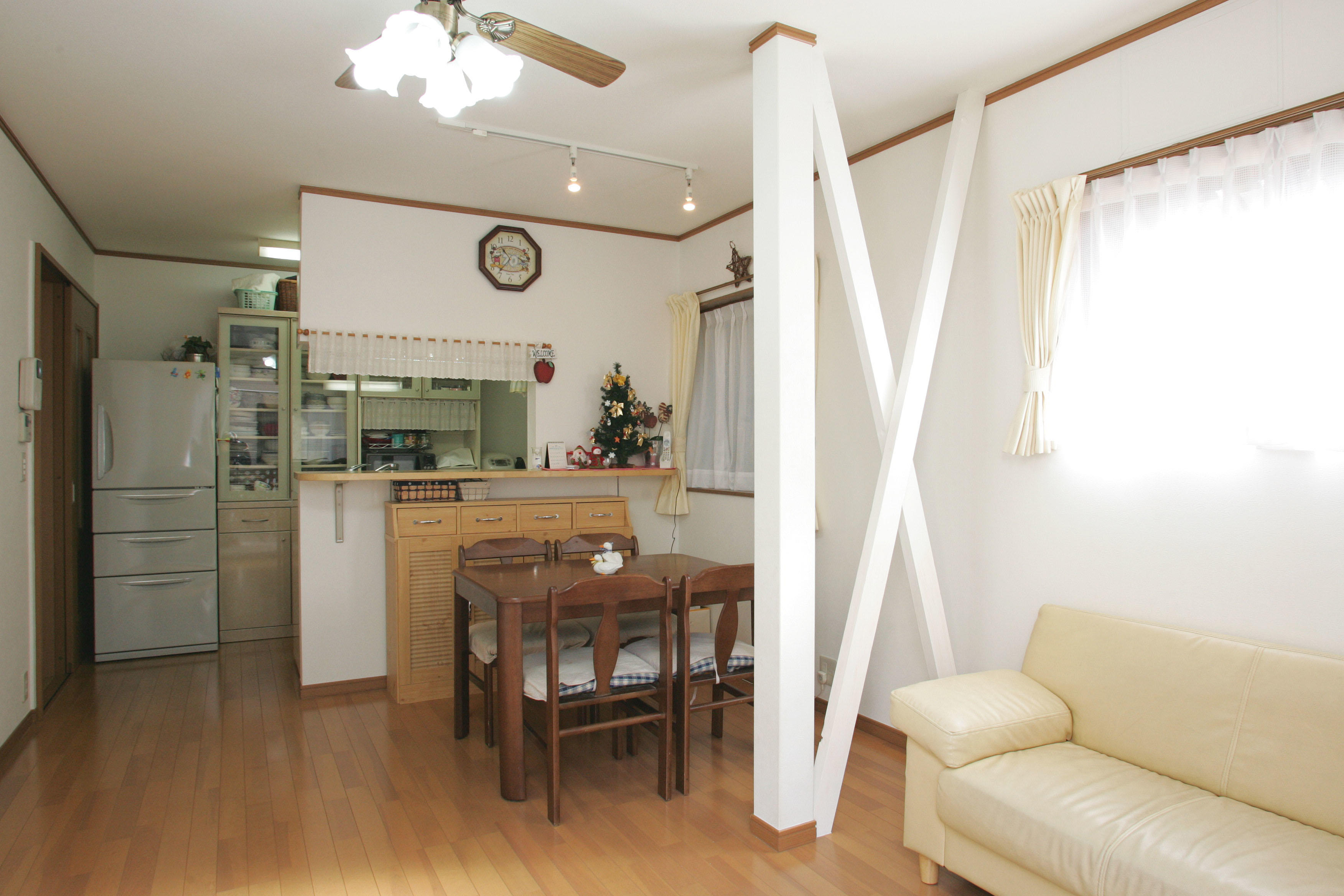 小さなお子様を持つご家庭には使い勝手が悪かった2階のLDK。今回のリフォームではリビングを、庭側に3畳分、増築しました。これにより、リビングにゆとりが生まれご家族の寛ぎの場らしくなりました。