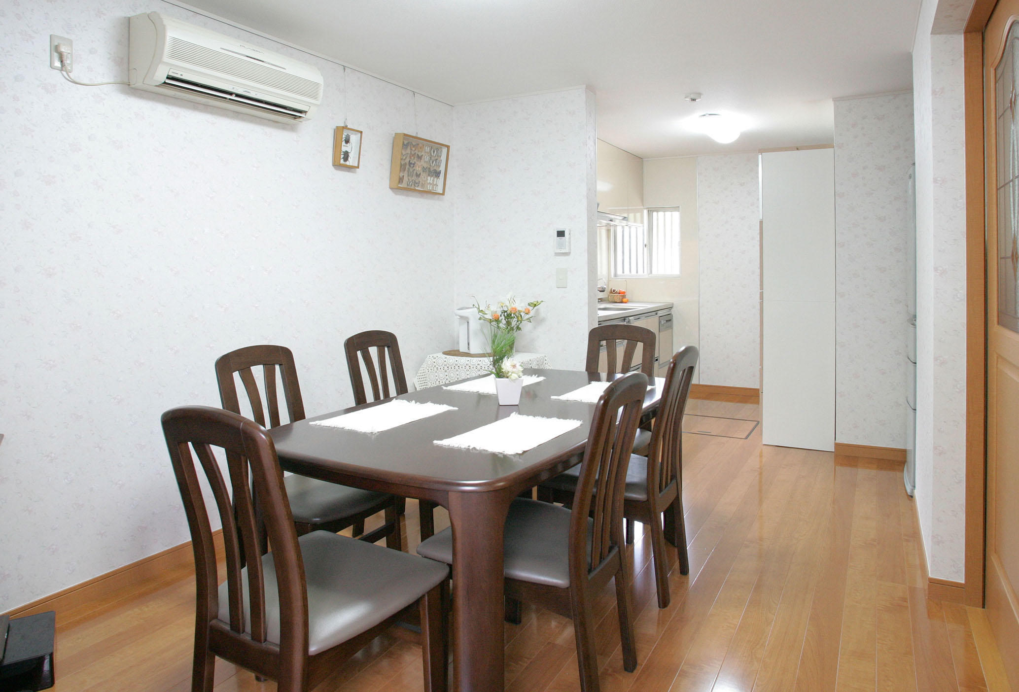 今回のリフォームはI様が「一生の最後の大仕事のつもりで・・・」とお話しするだけあって、キッチン・浴室洗面・トイレの水廻りを中心に、使い勝手を十分に配慮したプラン設計に仕上がりました。 リフォームプランの中でもっともご希望が高かったのは、3世代が家族団らんできる食事室をつくることでした。 そこでリビングに隣接する6畳和室を洋室に改装しキッチンとの壁仕切りを撤去、開放的なダイニングルームにリフォームしました。