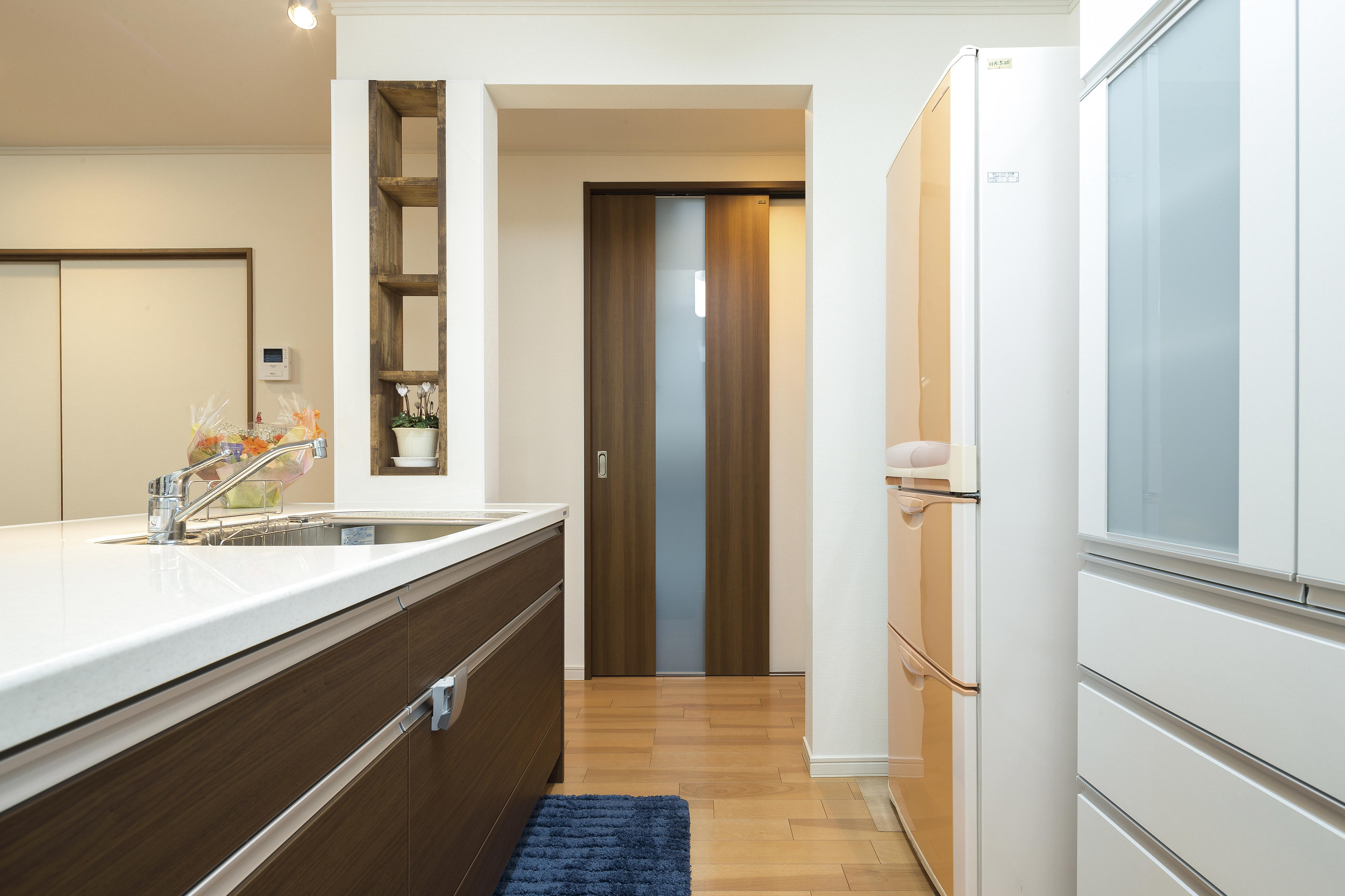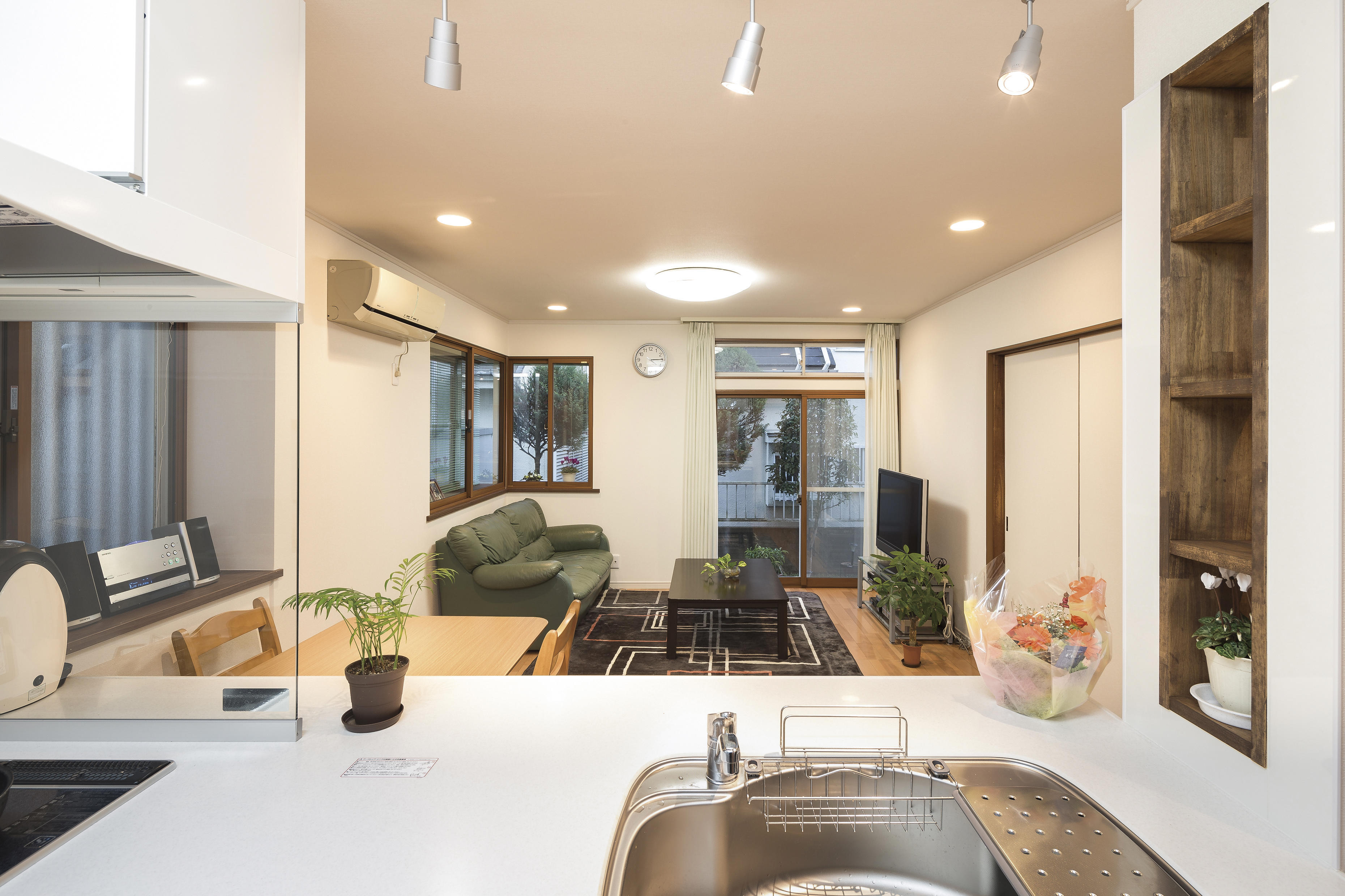 水まわりの設備は老朽化し屋根は雨漏り。冬の寒さや結露、そして部屋の明るさに不満がありましたが、キッチンをオープンタイムにし、建具や床材をナチュラルカラーのものに変更して明るいLDKを実現しました。