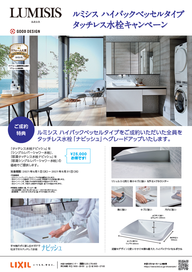 「即湯タッチレス水栓ナビッシュ」を「即湯シングルレバーシャワー水栓」の価格でご提供します。