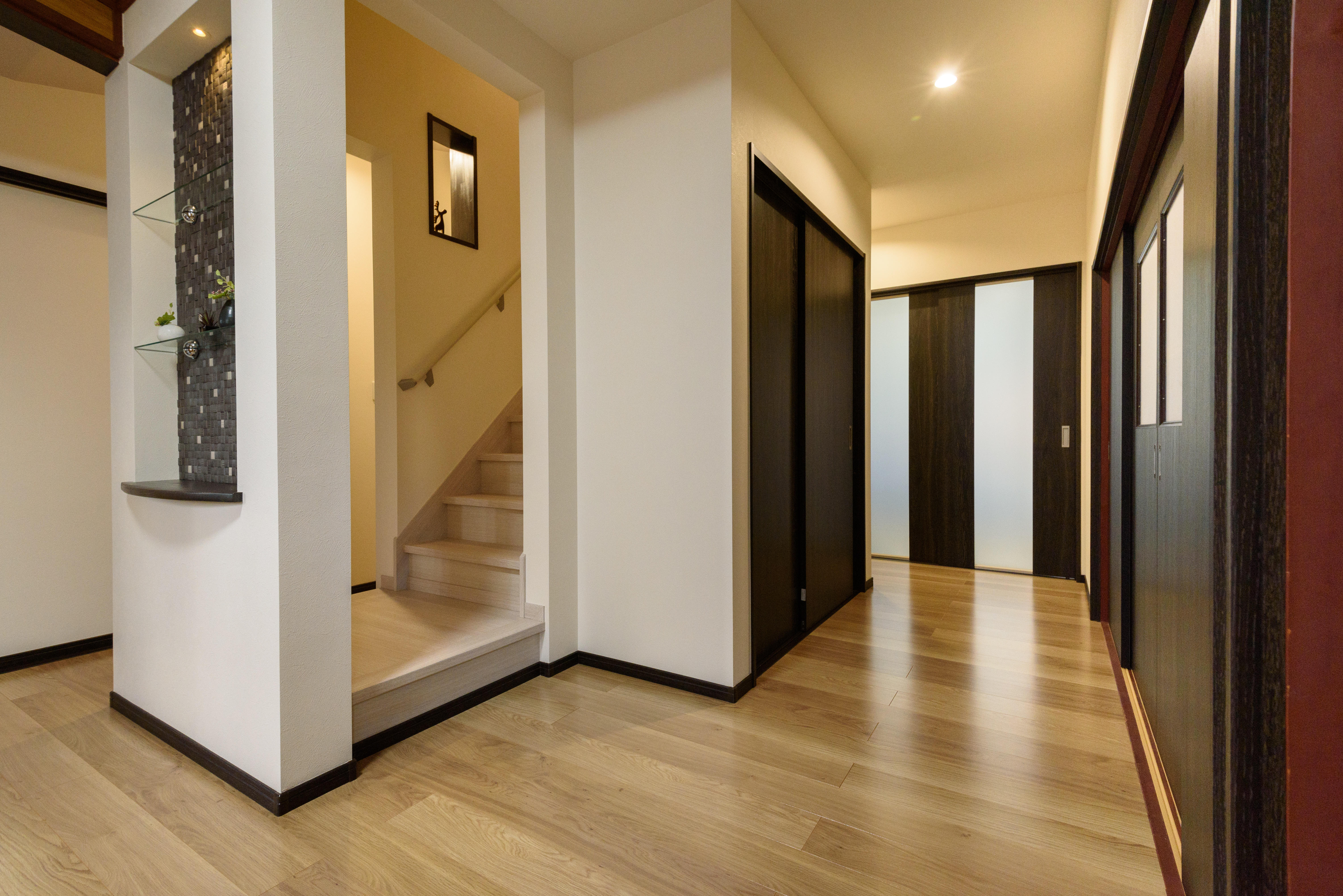 四つ住まいのお家をまるごとリフォーム。今の生活スタイルに合わせた間取りに。玄関ホールにある和室は以前より利用することが少なくなったとの事で、広々とした玄関ホールとし、収納スペースと階段室へと一新しています。