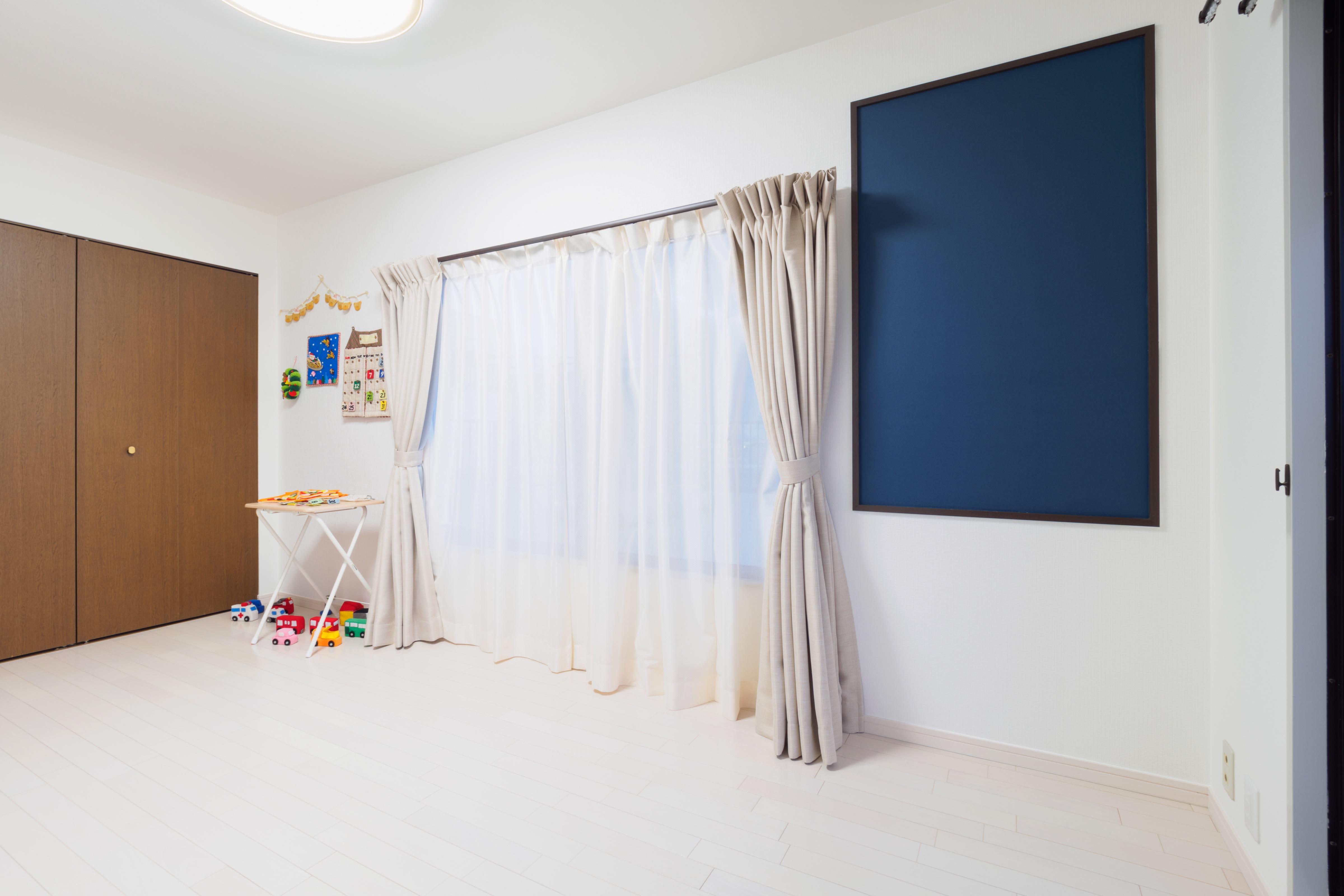 掲示用クロスや黒板クロスを部分貼り。飾ったり、書いたりと目的に合わせ壁も活用。