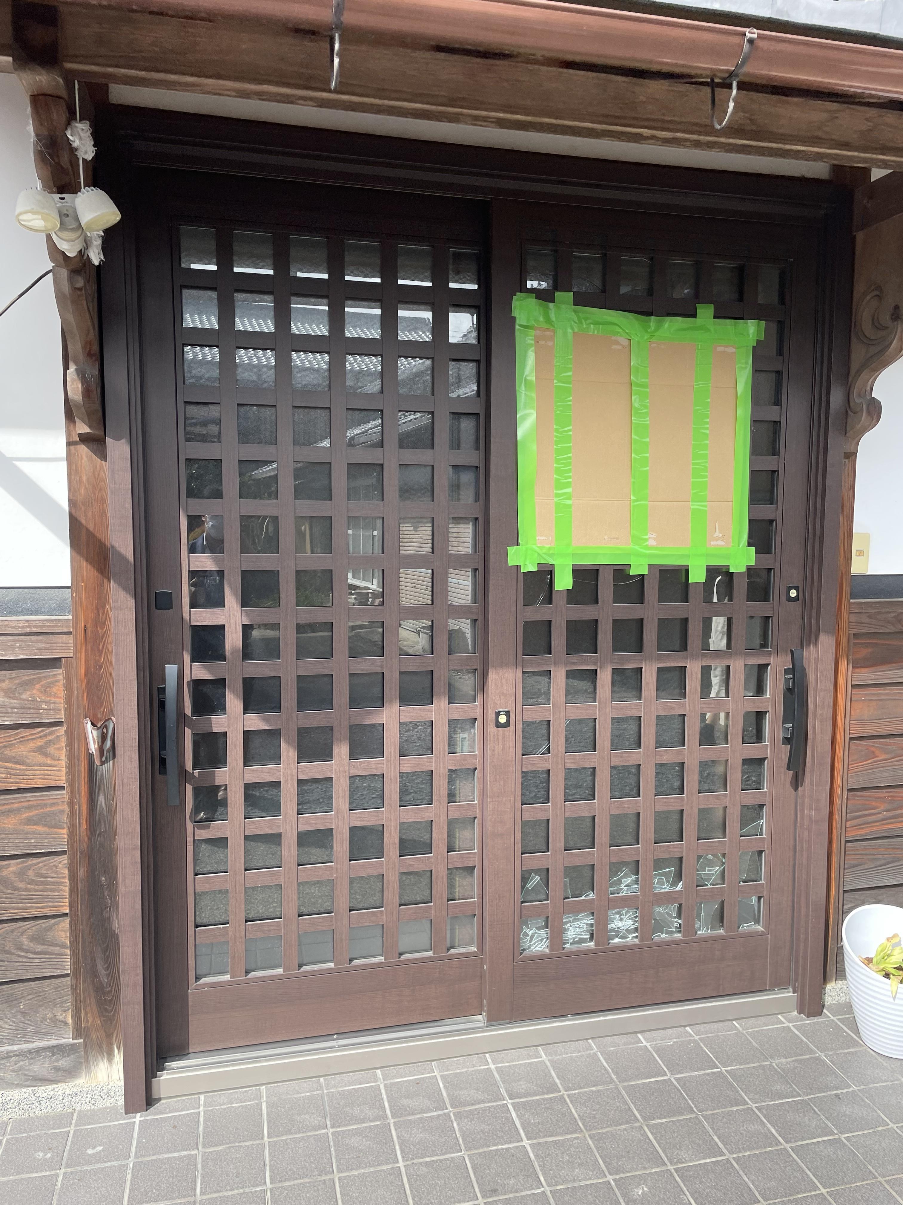 現調の際に実際に見させていただいたところ、中桟の修復が難しいということでガラスのみではなく、玄関扉まるごとのお取替えとなりました。