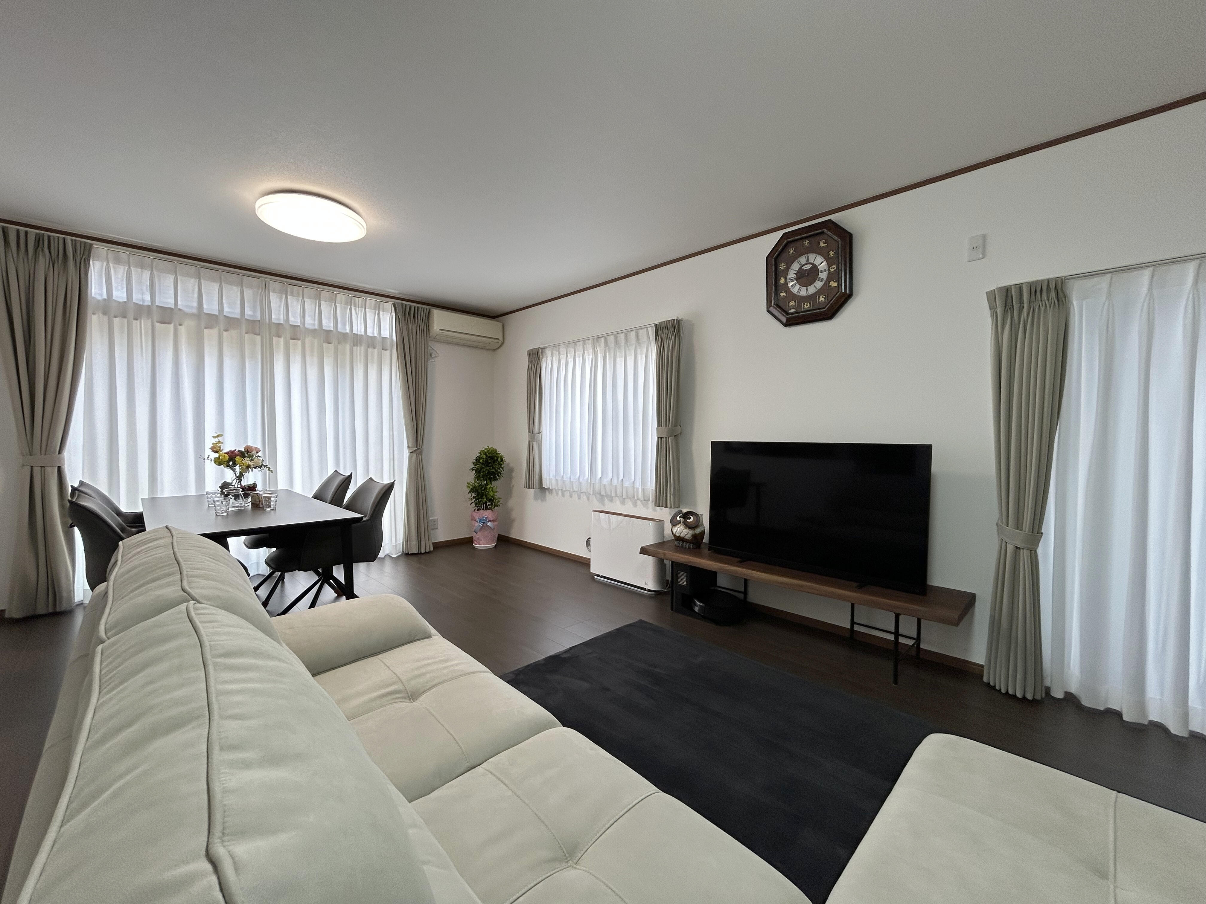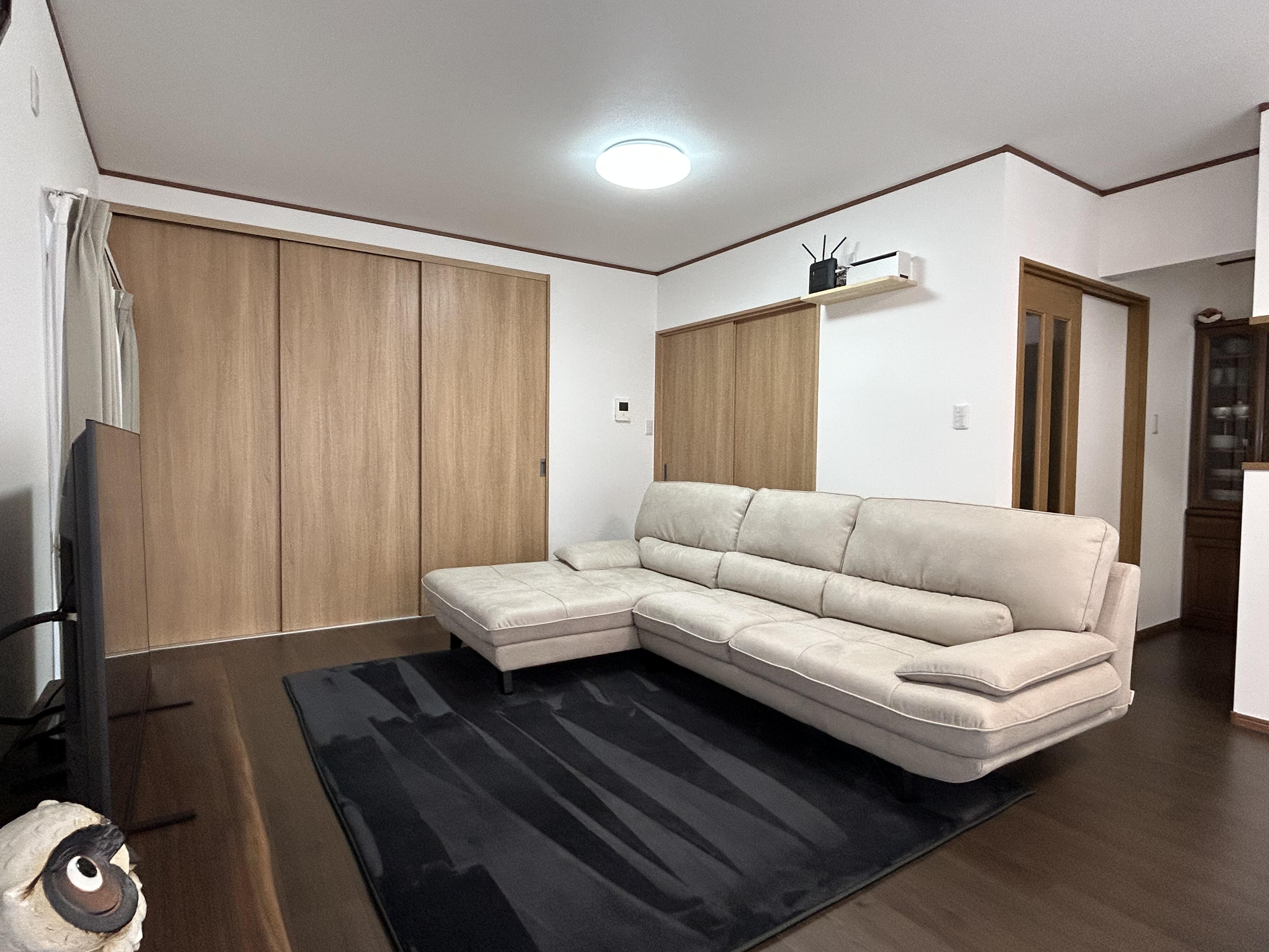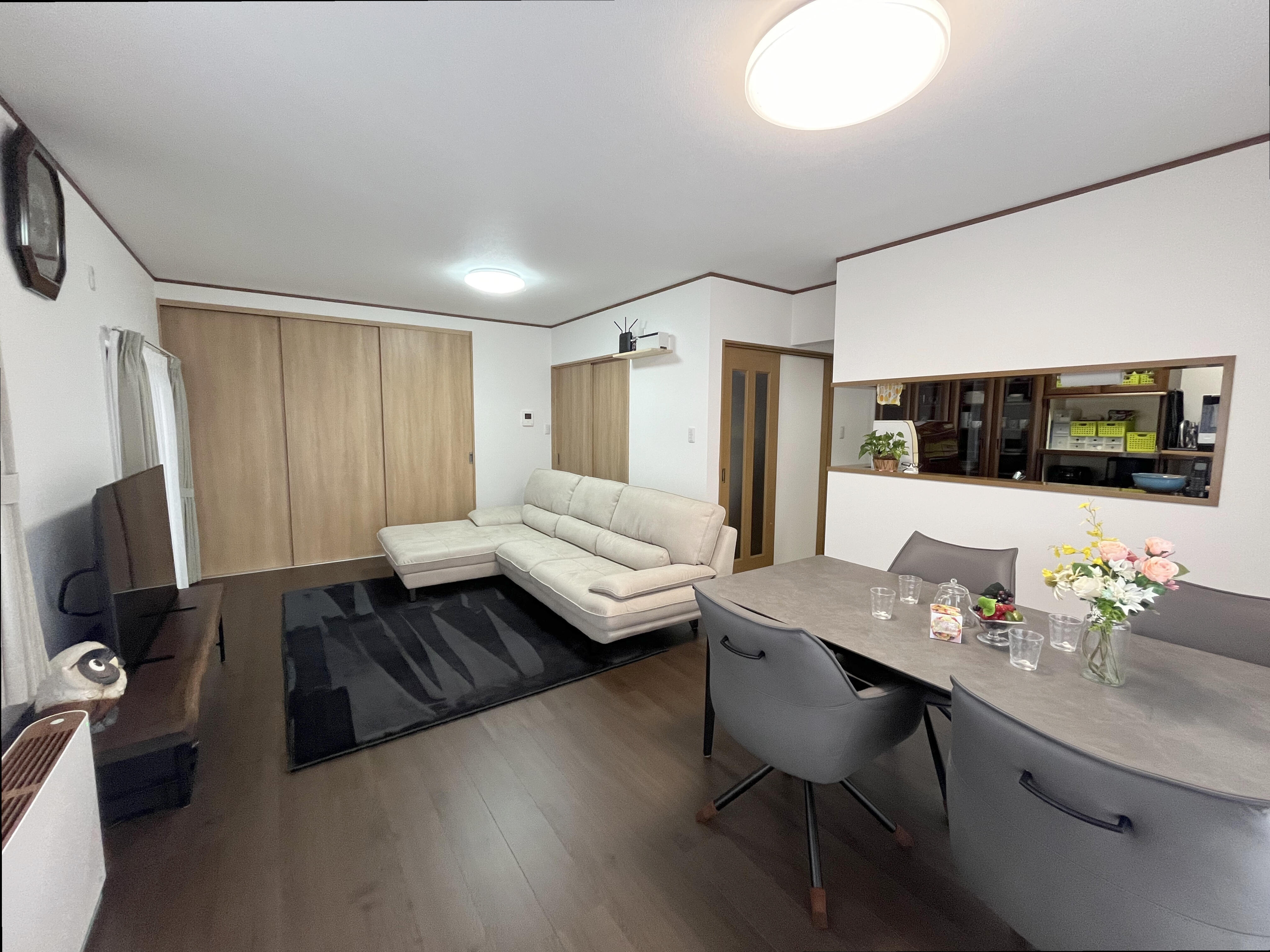 元々は食堂・居間だった空間に隣接していた和室を取り込み、開放感のあるLDKが誕生しました。それぞれの部屋で窓のサイズが異なっていましたが、違和感のない仕上がりに。照明の位置は、工事後に現地で実際の空間を見ながらお施主様と一緒に確認し、最適な配置を決めました。