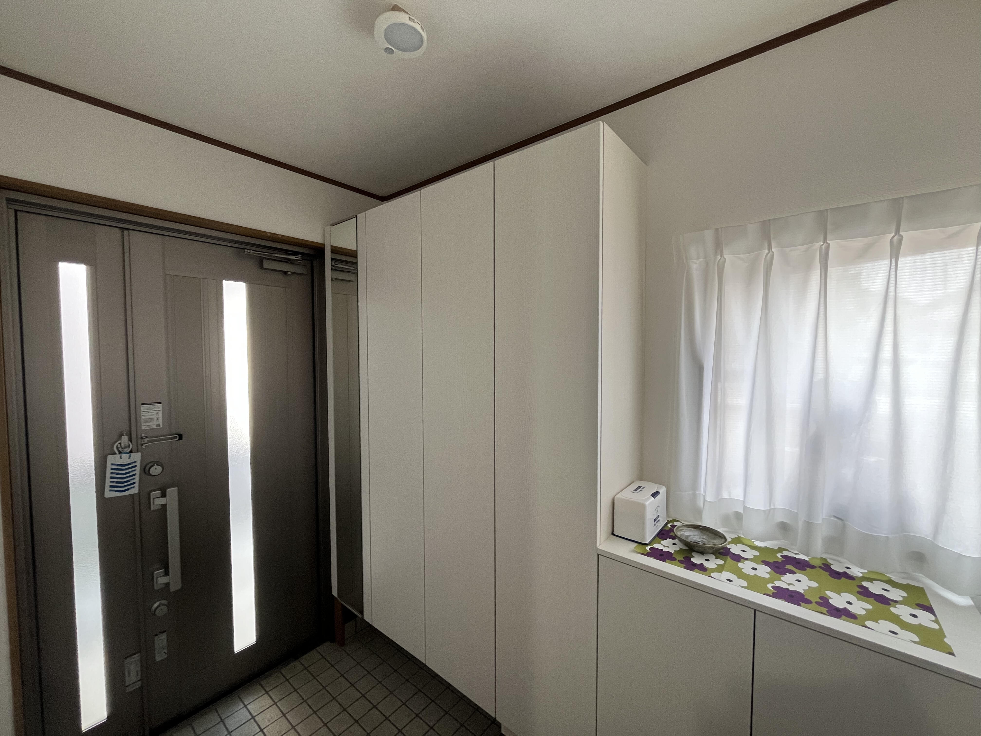 玄関収納は既存の窓にかからないよう、窓部分はローキャビネットを採用。見た目もスッキリ、大容量収納可能です。玄関ドアはLIXIL リシェントファミロック機能付きです。お手持ちのスマートフォンが玄関キーになり、スマートフォンを持っていればドアボタンを押すだけで開錠可能!大荷物の際でもバッグからキーを取り出さなくていいので楽々スマート!