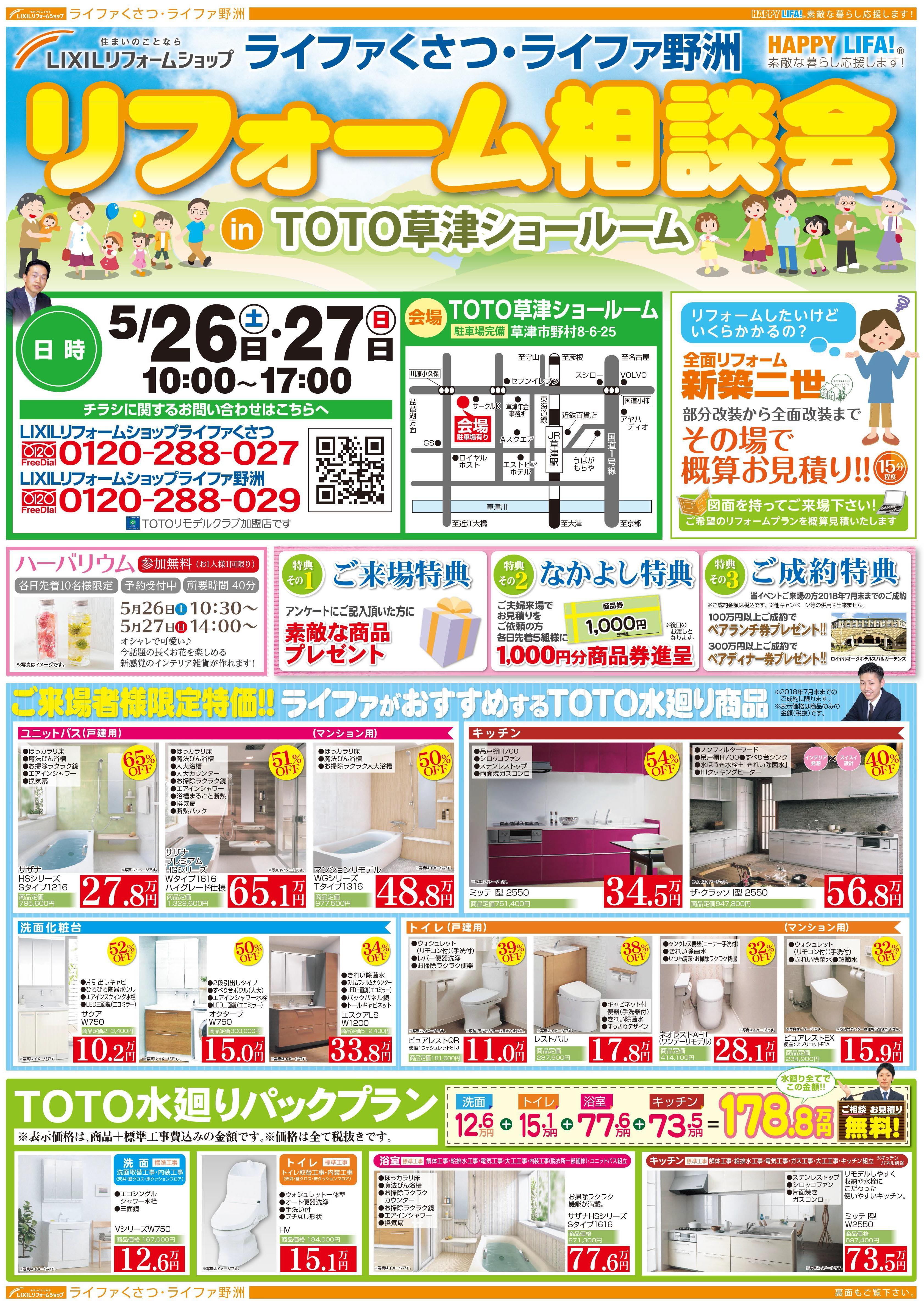 リフォーム相談会inTOTO草津ショールームチラシ (4.2 MB) 一覧へ戻る