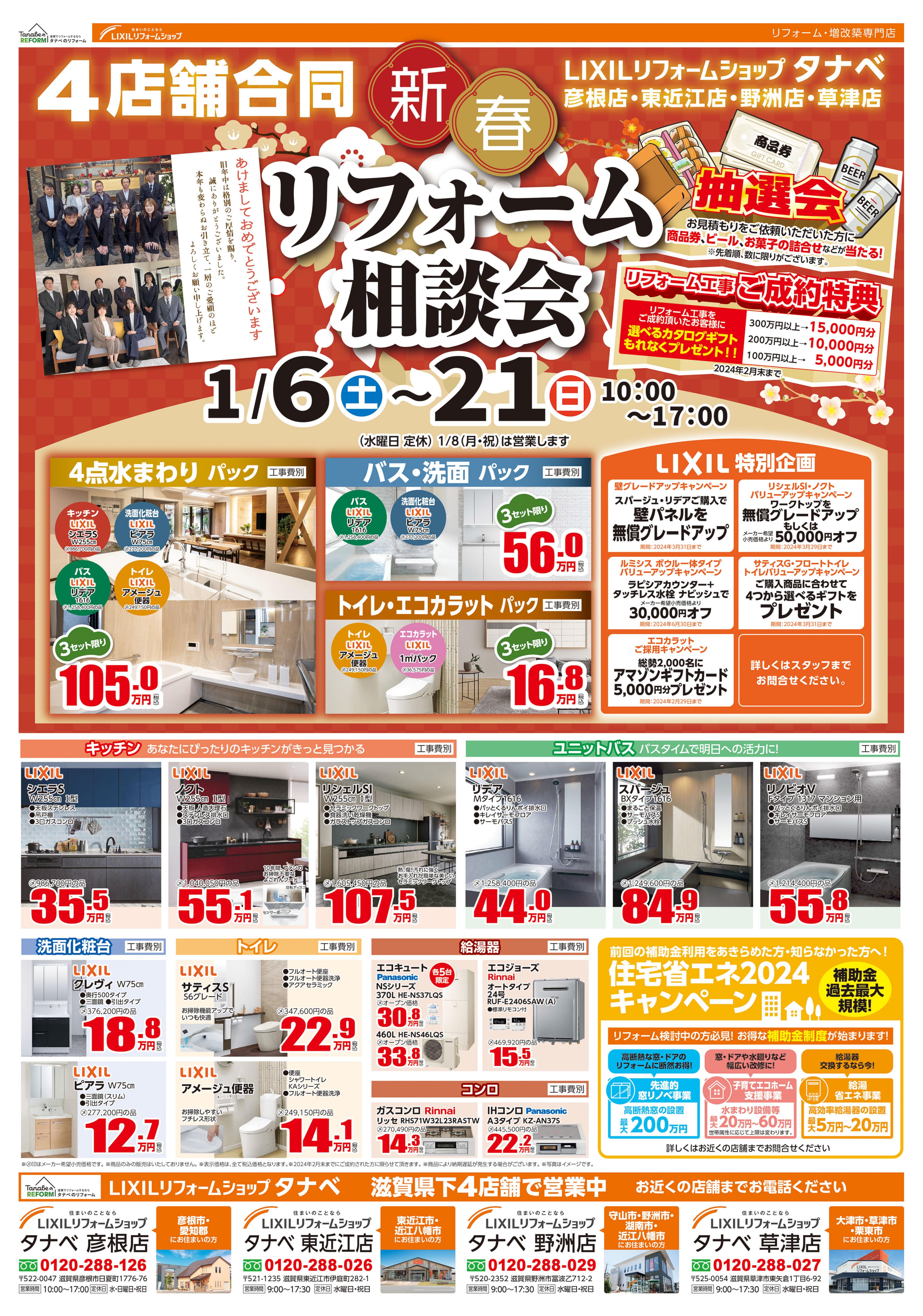 2024年もLIXILリフォームショップ タナベ 野洲店をよろしくお願いいたします。