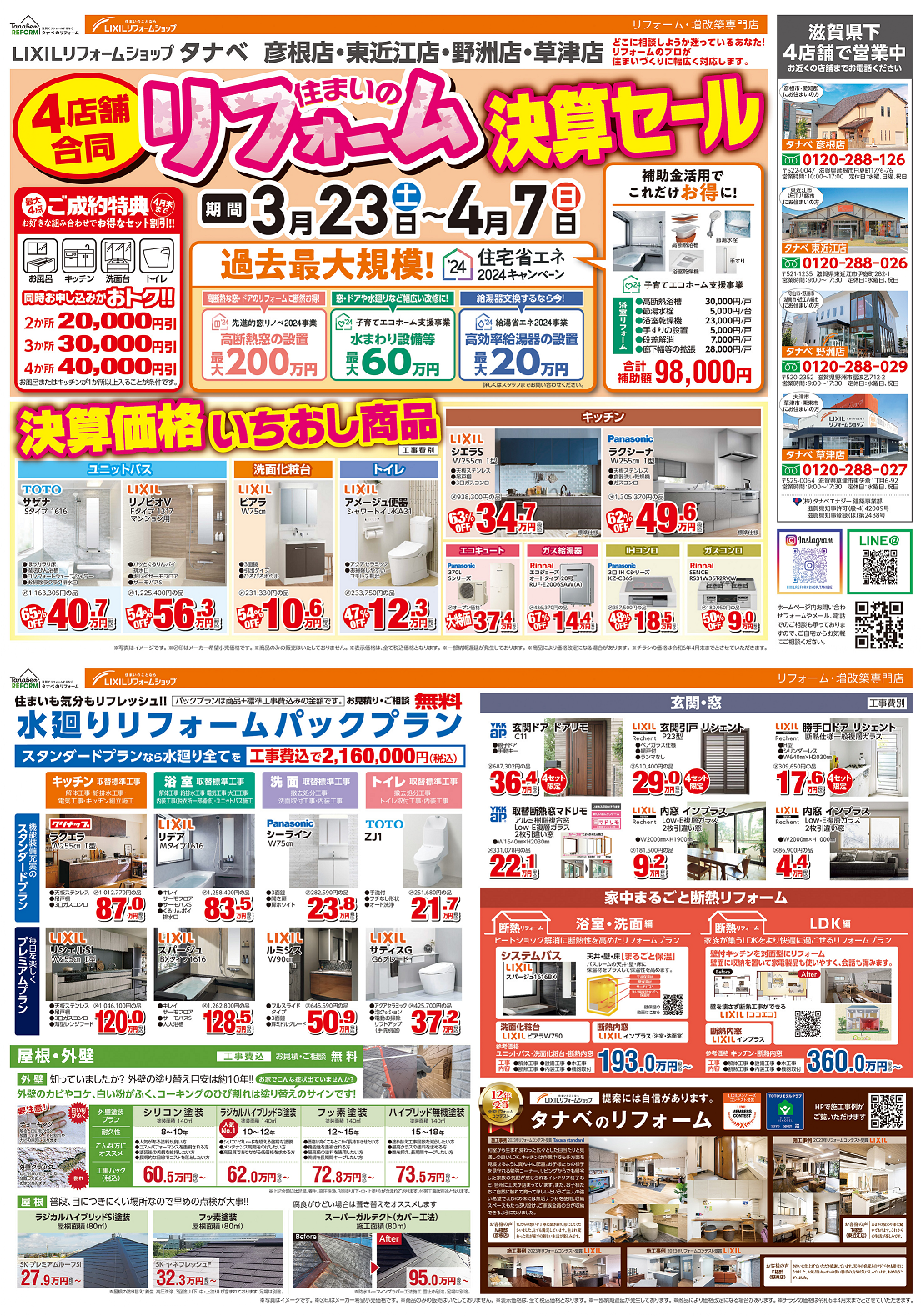 タナベのリフォームでは、3.23(土)~4.7(日)の期間中