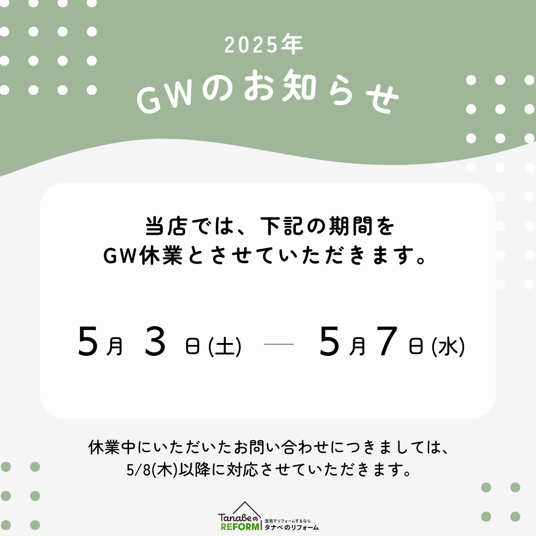 5/3(土)~5/7(水) ゴールデンウィーク休業
