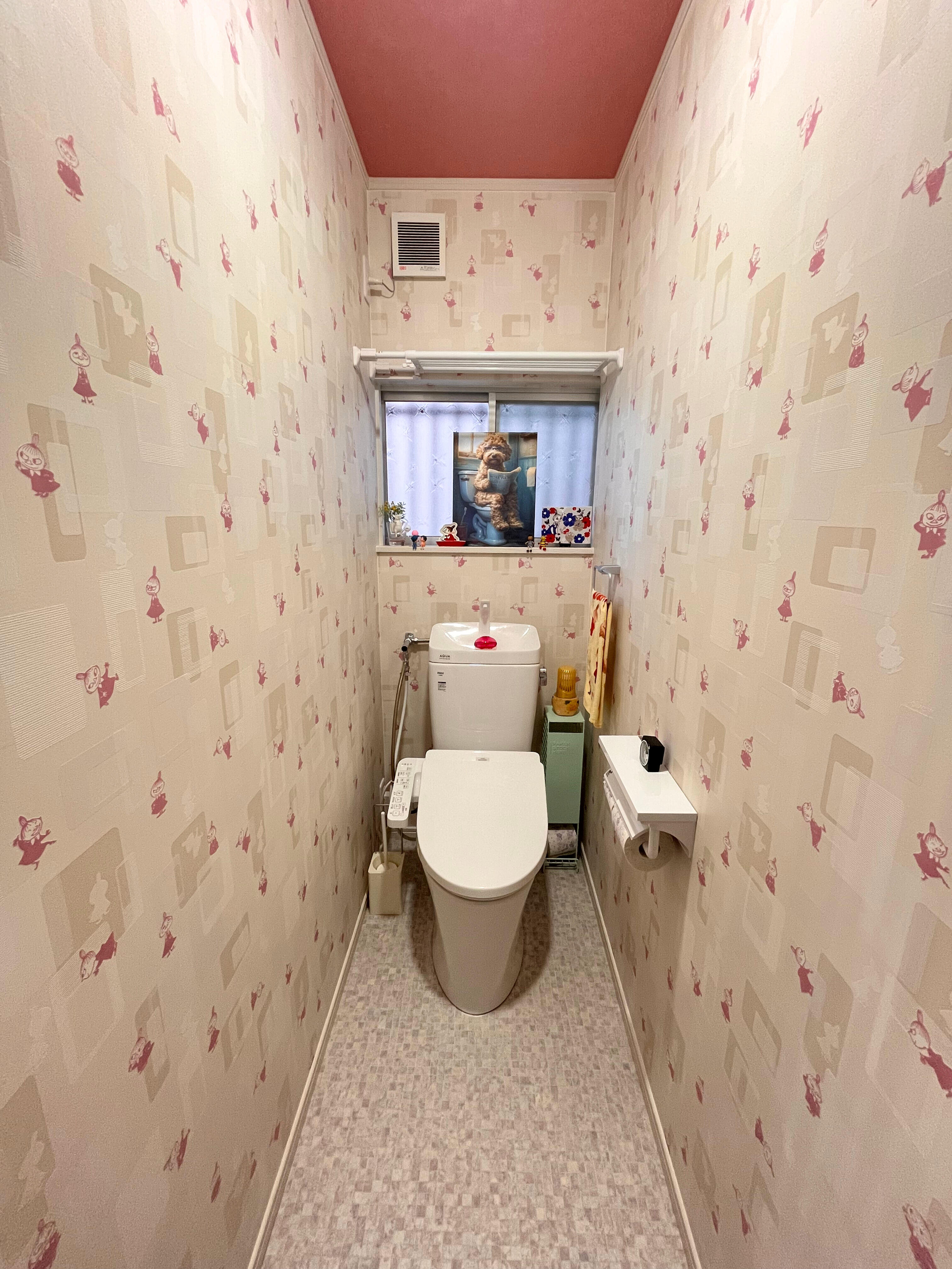 (ピンクの天井に奥様の大好きなリトルミイのクロスの組み合わせはショールームにもありそうなお洒落さ!)