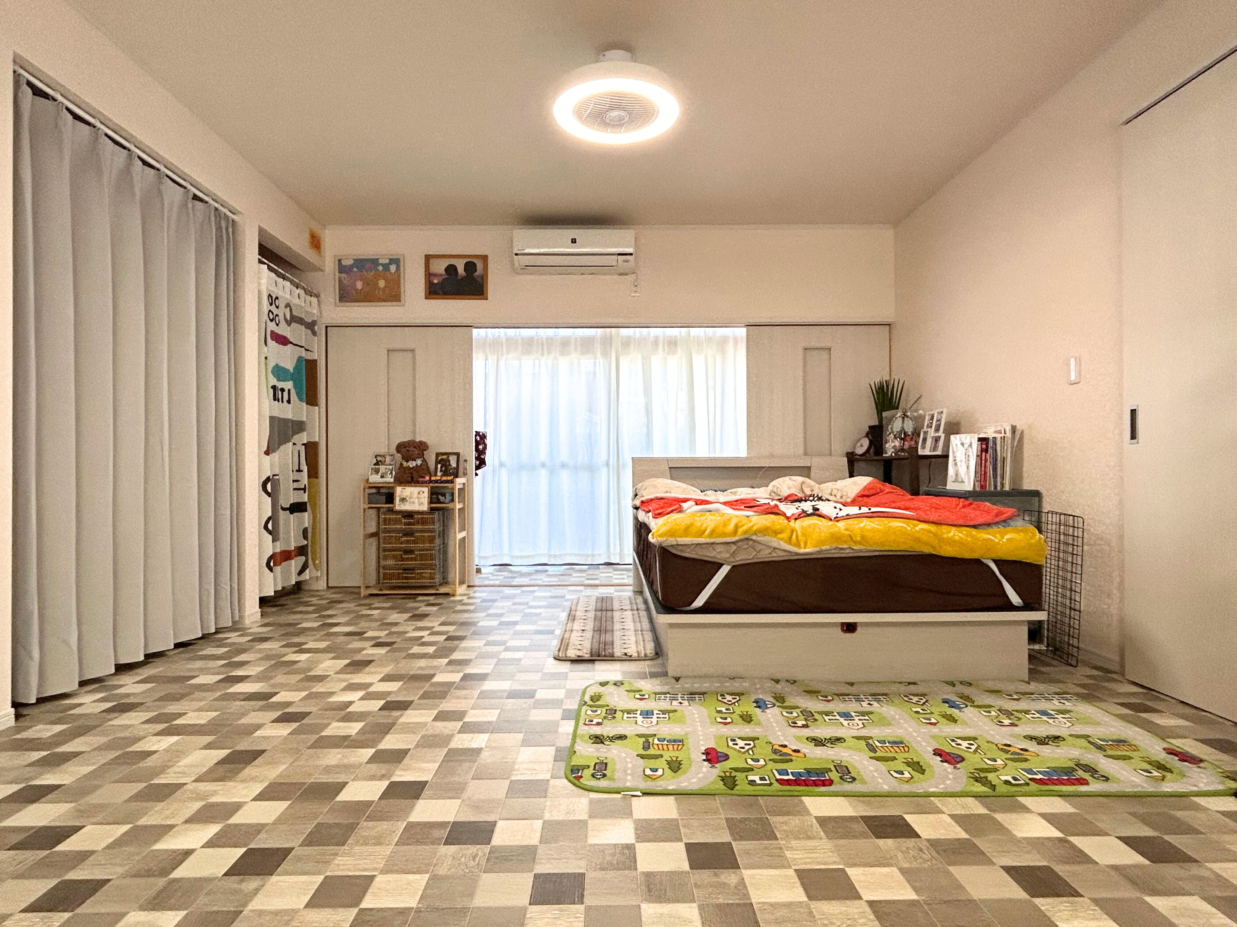 A.二人暮らしの小さな平屋なので、部屋を少しでも広く見える様に、いつも気持ちの良い色合いの部屋である様に、また圧迫感がない様に扉を少しでも無くし、極力スイッチ類はまとめて人感センサー、リモコンを用いて、スッキリ見せる様にしました。お気に入りはクロス、CFかな(笑)