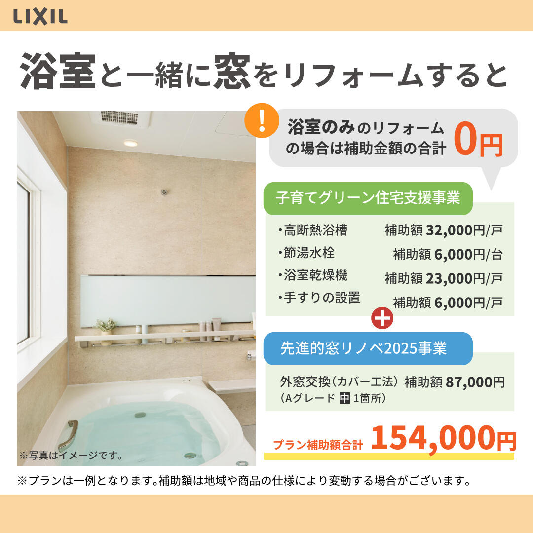「浴室だけ」では補助金0円ですが、窓と一緒なら断然お得です☆