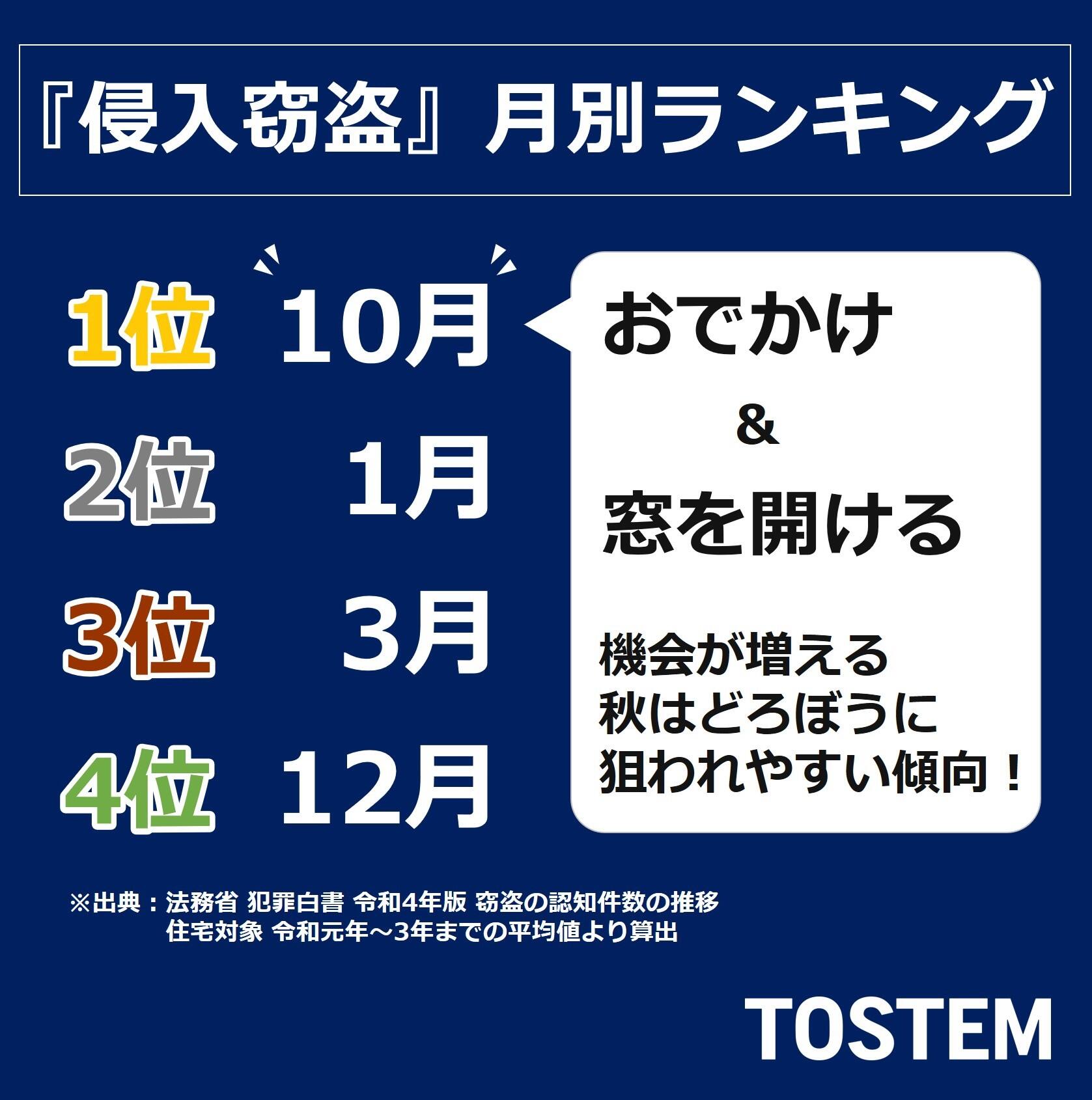10月から3月にかけては、住宅への侵入窃盗が増える傾向があります。