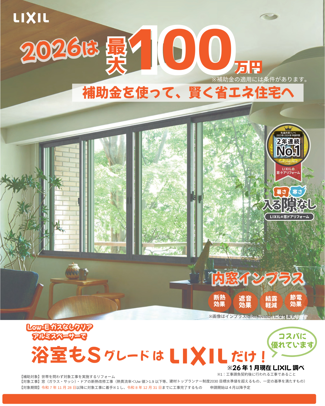 2026住宅省エネキャンペーン♪補助金を活用した内窓リフォームで、快適な省エネ住宅へ
