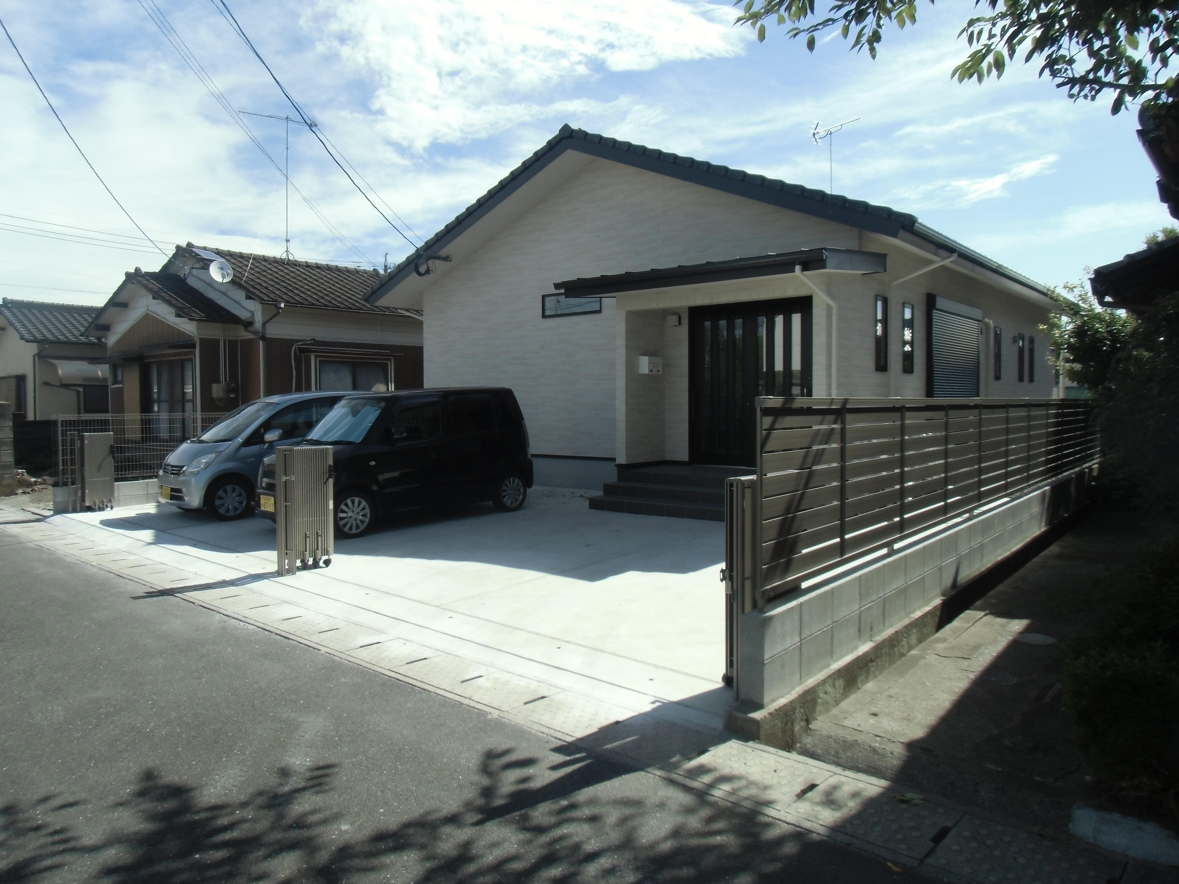 家のまわりの外構工事。車の駐車場に伸縮門扉をつけたいのと、フェンスを新しくしたいという希望でした。