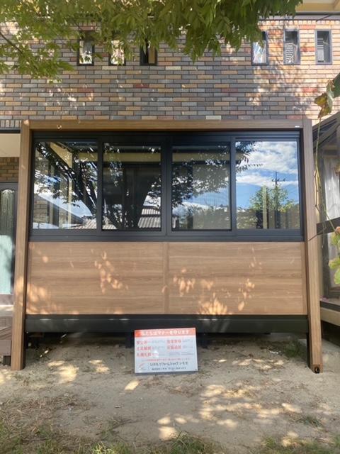 おしゃれなテラスをつけたいと思い、来店されました。LIXILのガーデンルームに一目惚れして購入することにしました。 デッキも木彫にされて、自然な風合いがでて美しいデザインになりました。