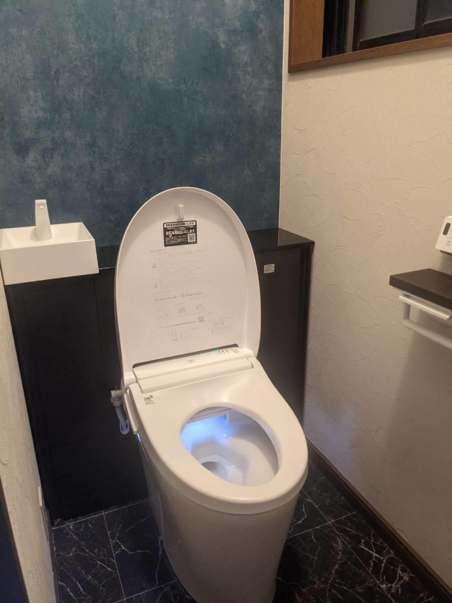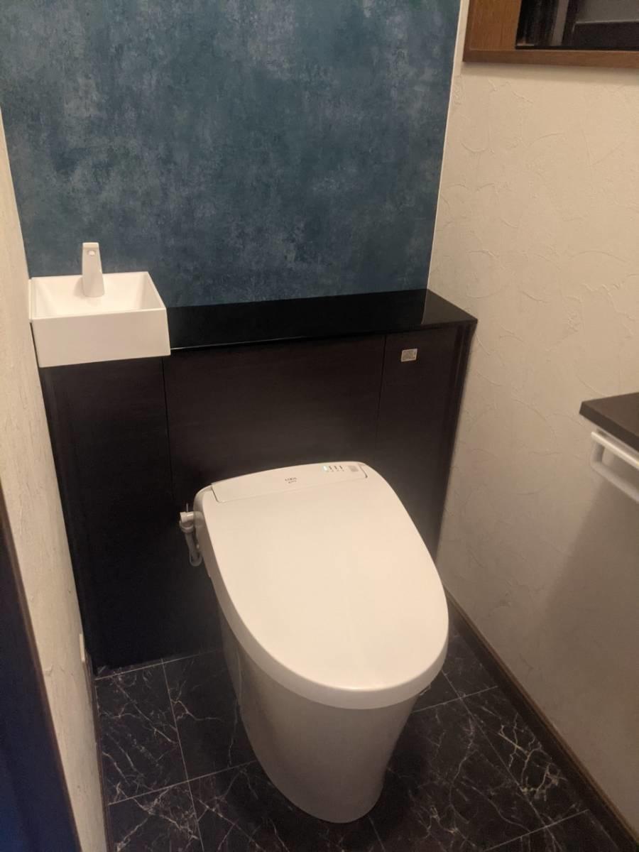 タンクを収納して見た目スッキリ、落ち着いた色合いでお洒落な空間になりました。