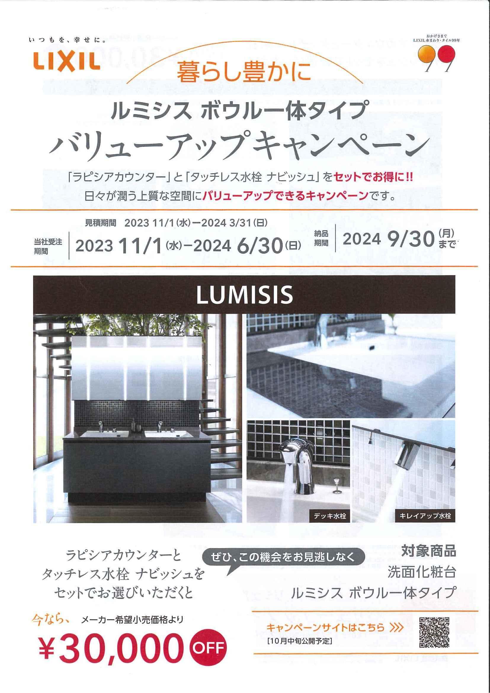 洗面化粧台☆ルミシス ボウル一体型タイプ バリューアップキャンペーン