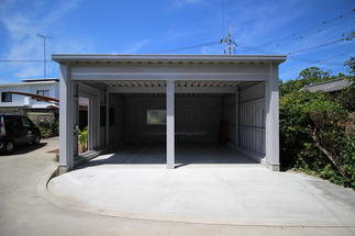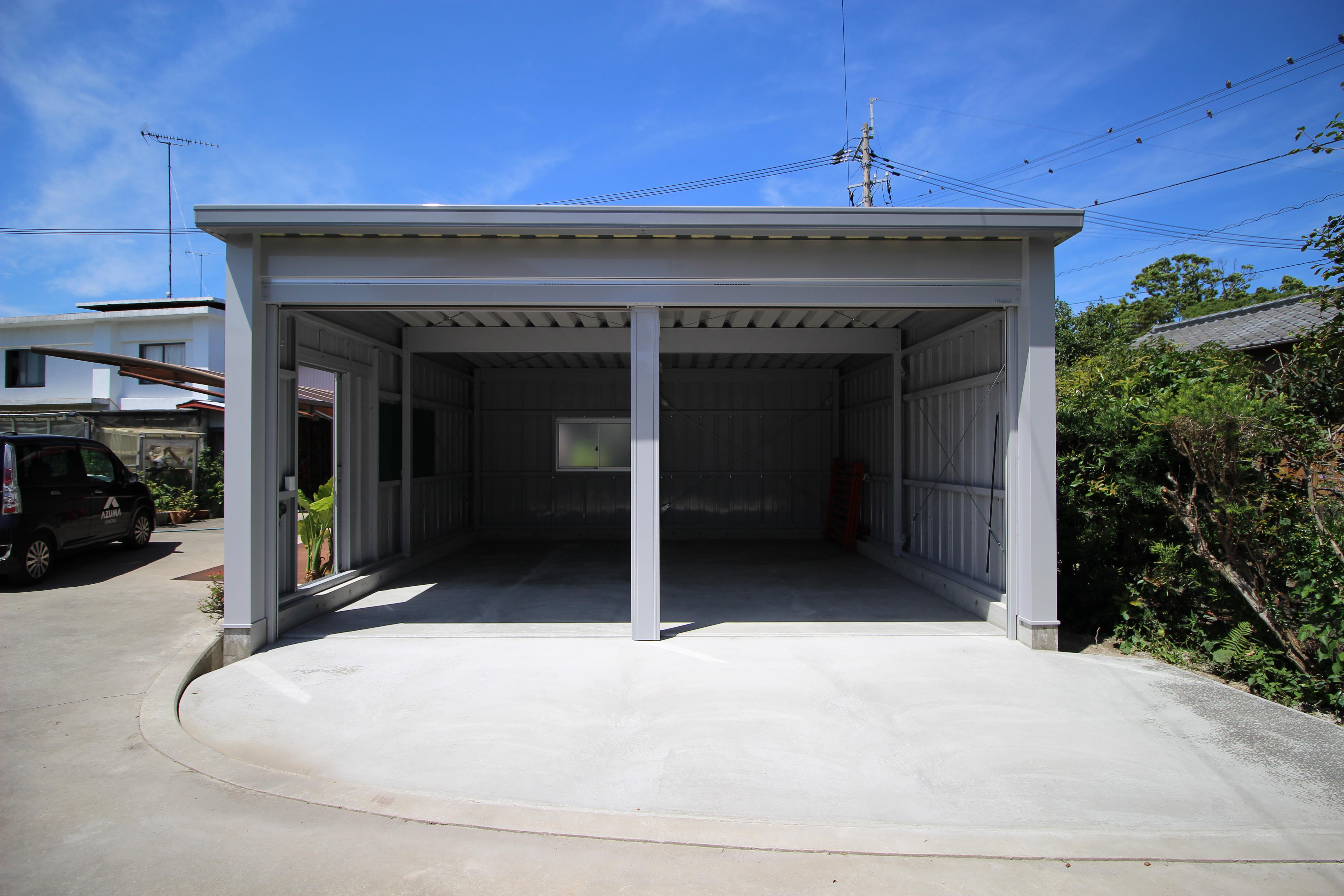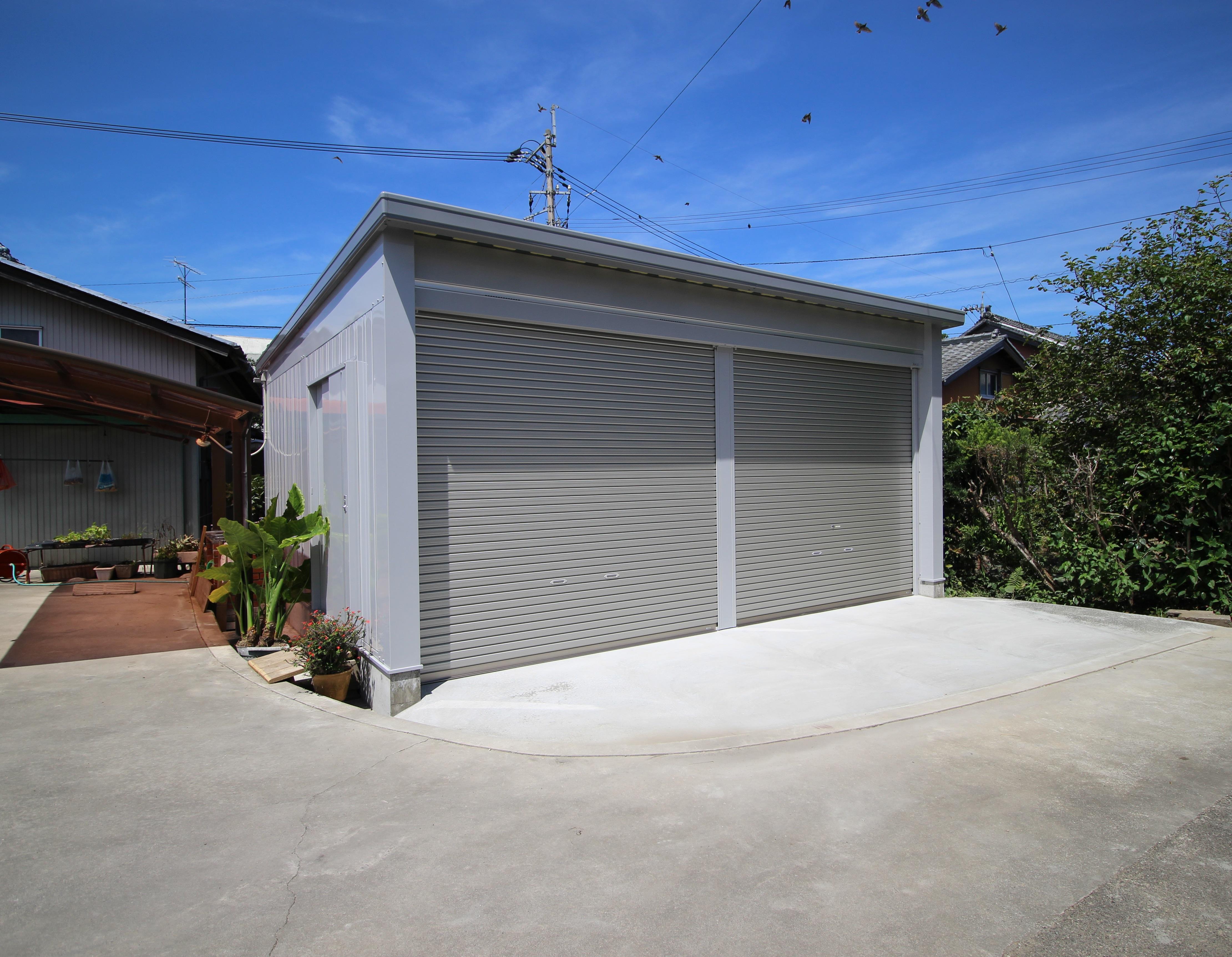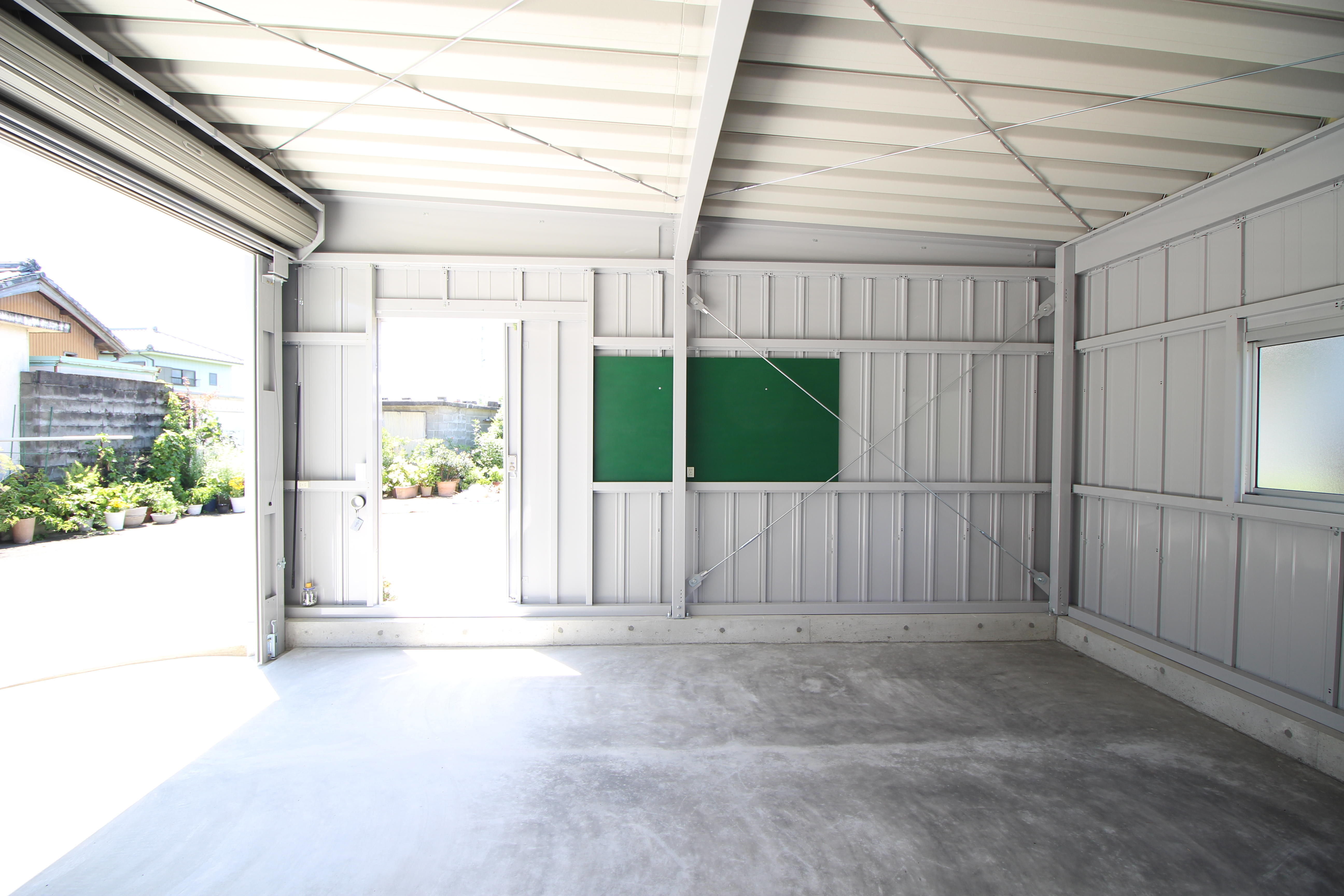 自宅の家庭菜園をしていた場所に、車庫や作業場として使える倉庫を設置しました。