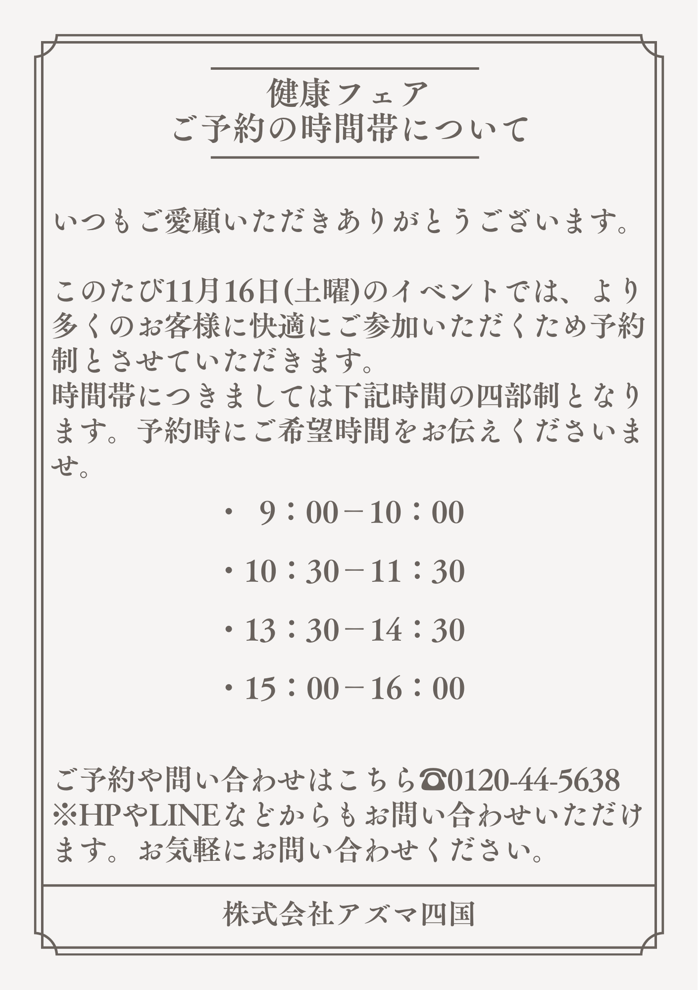 ※4部制としておりますので、ご予約の際には希望の時間も合わせてお伝えください。