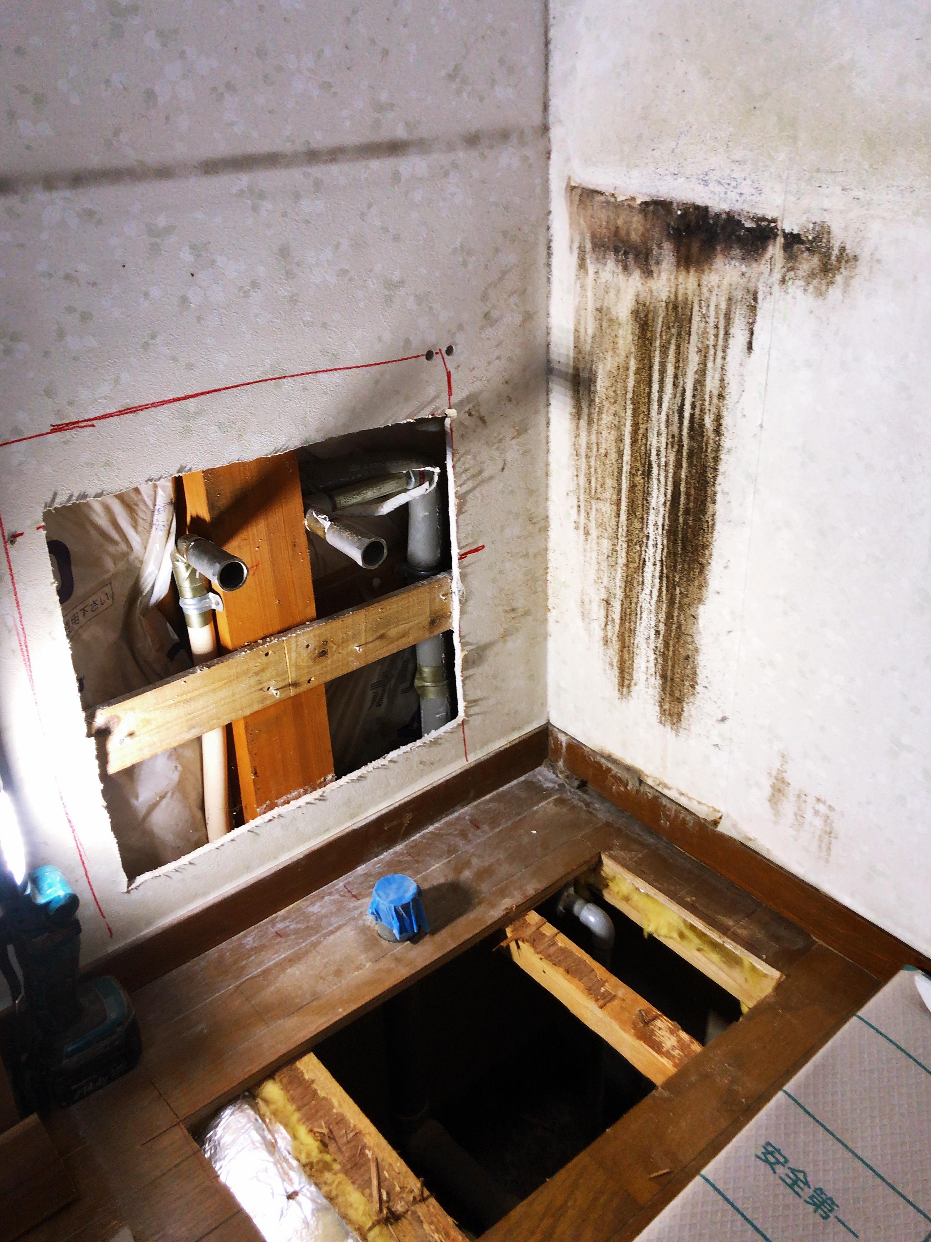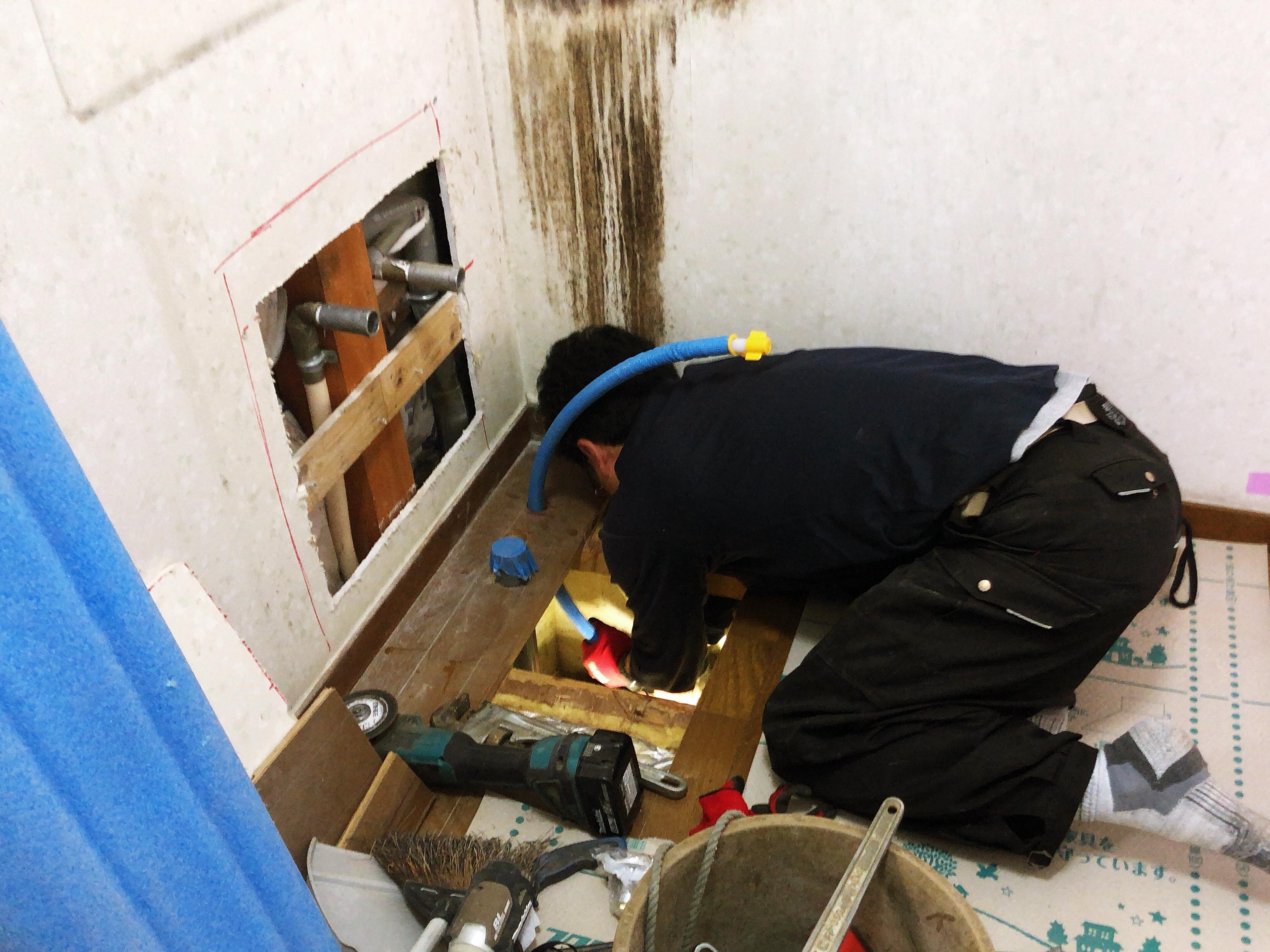 配管の位置を新しい洗面化粧台に合わせて移動します。