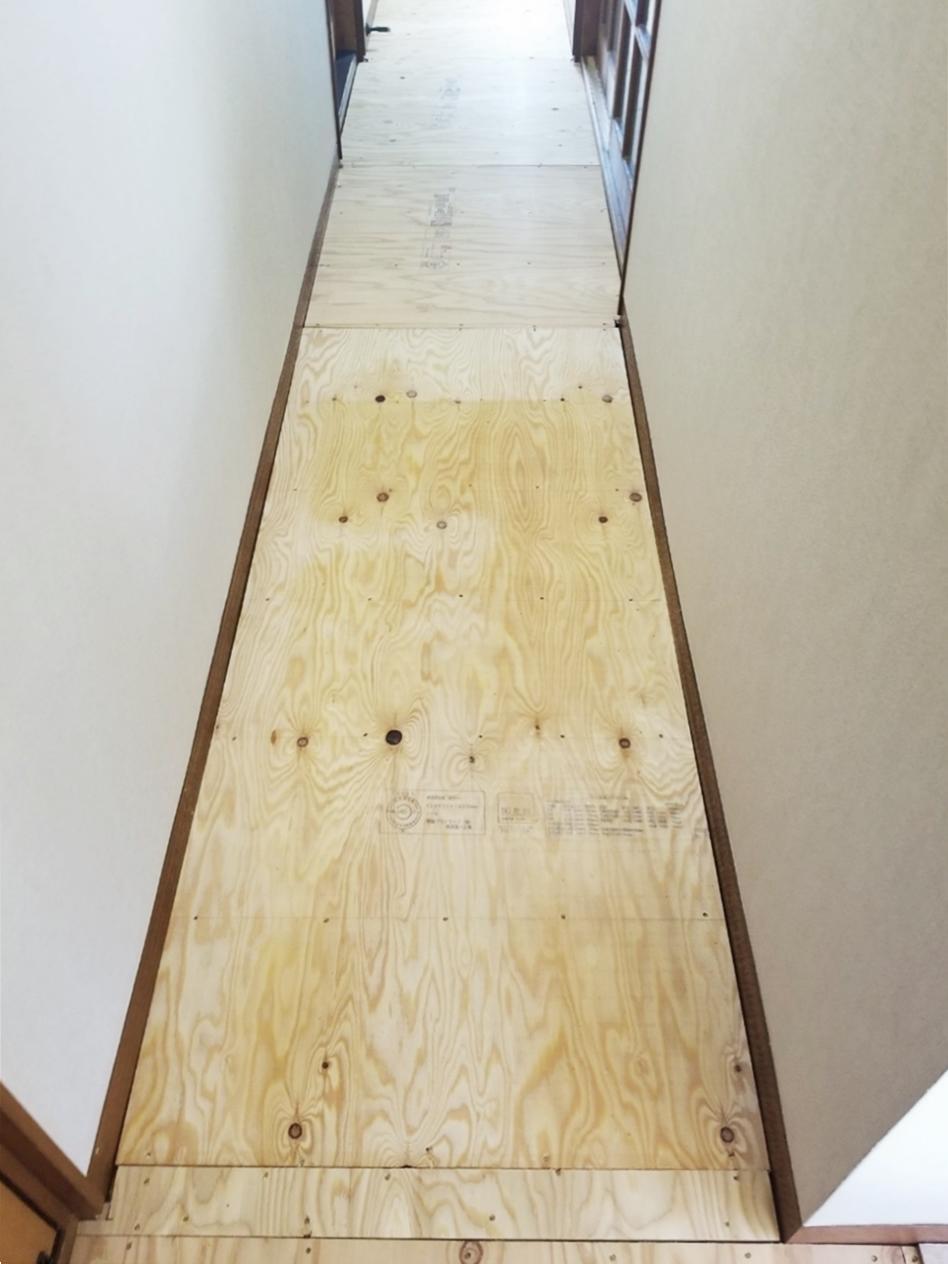 今回、廊下をかさ上げして、たわみと段差を解消します!