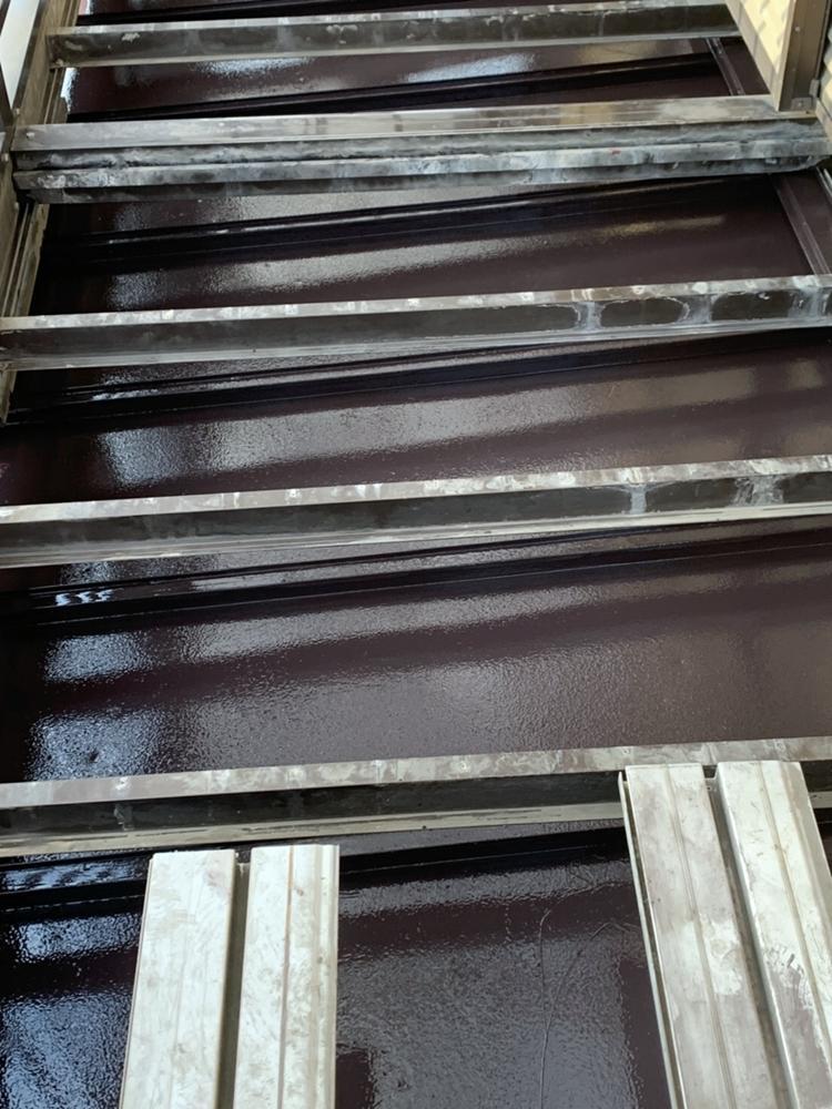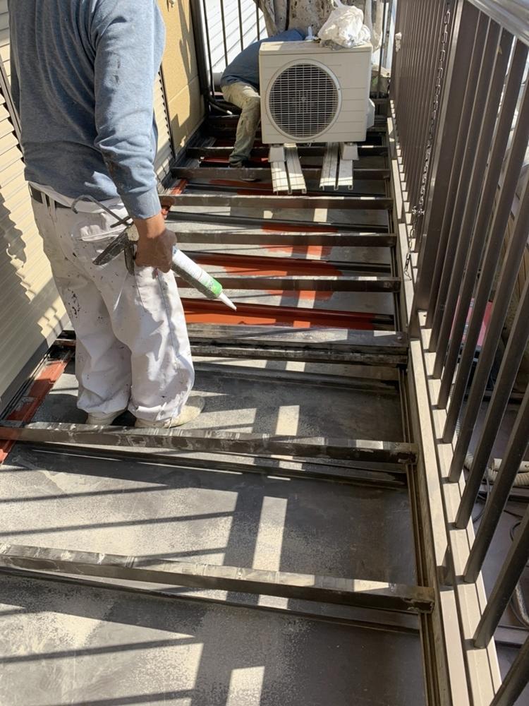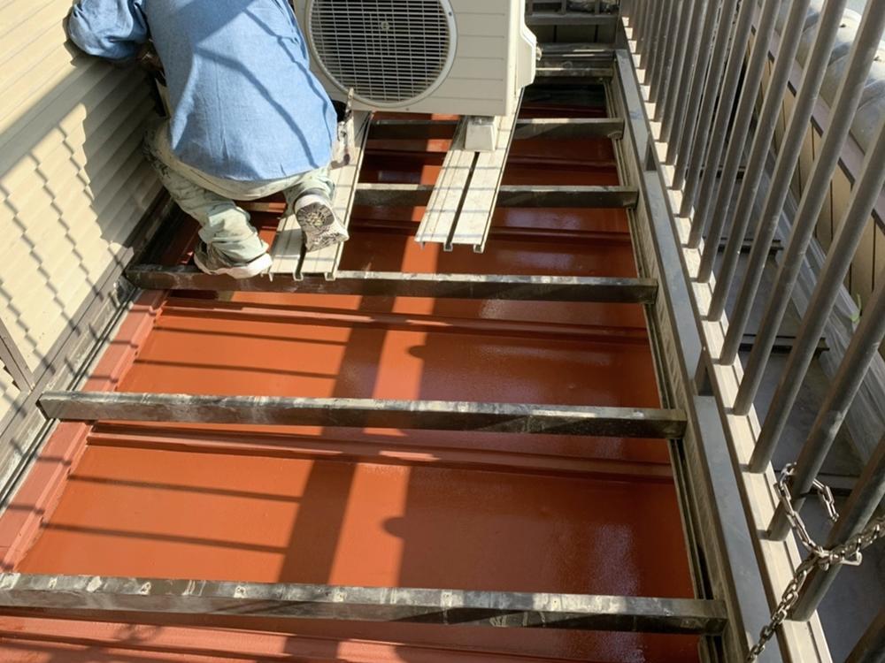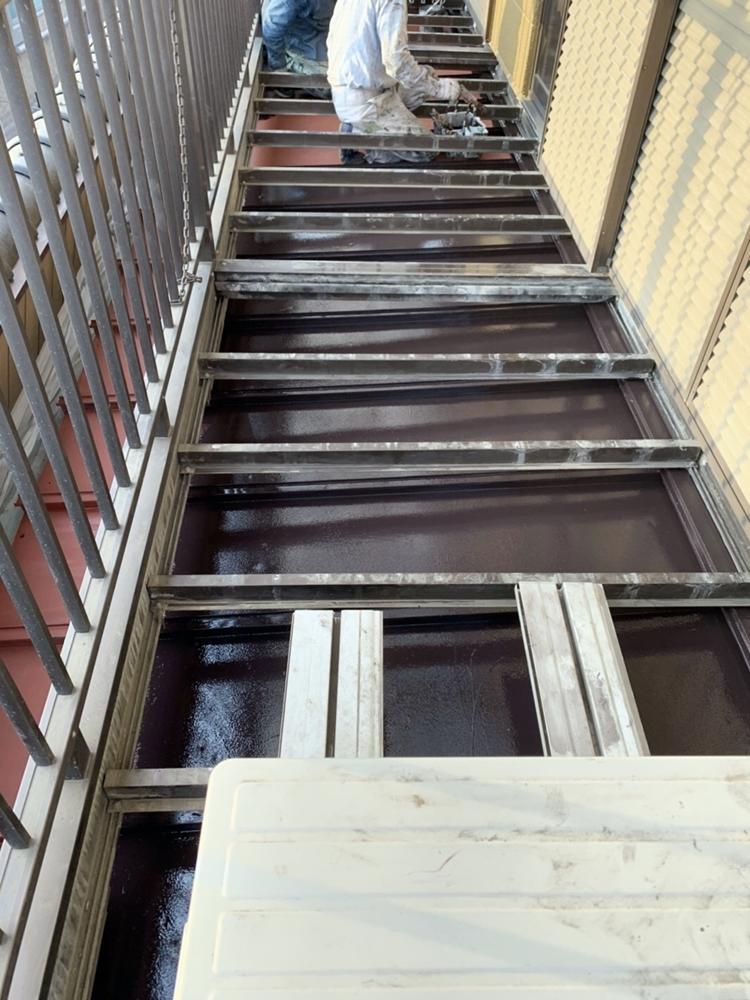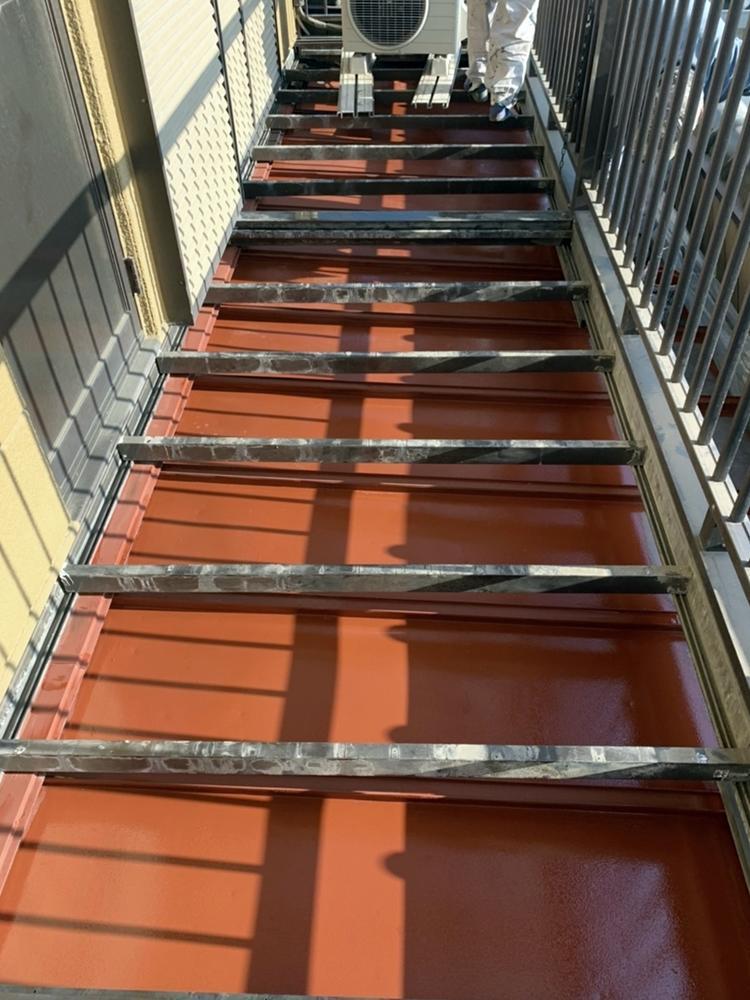 錆止め(赤)を塗って、さらに仕上げ(こげ茶)を塗ります。
