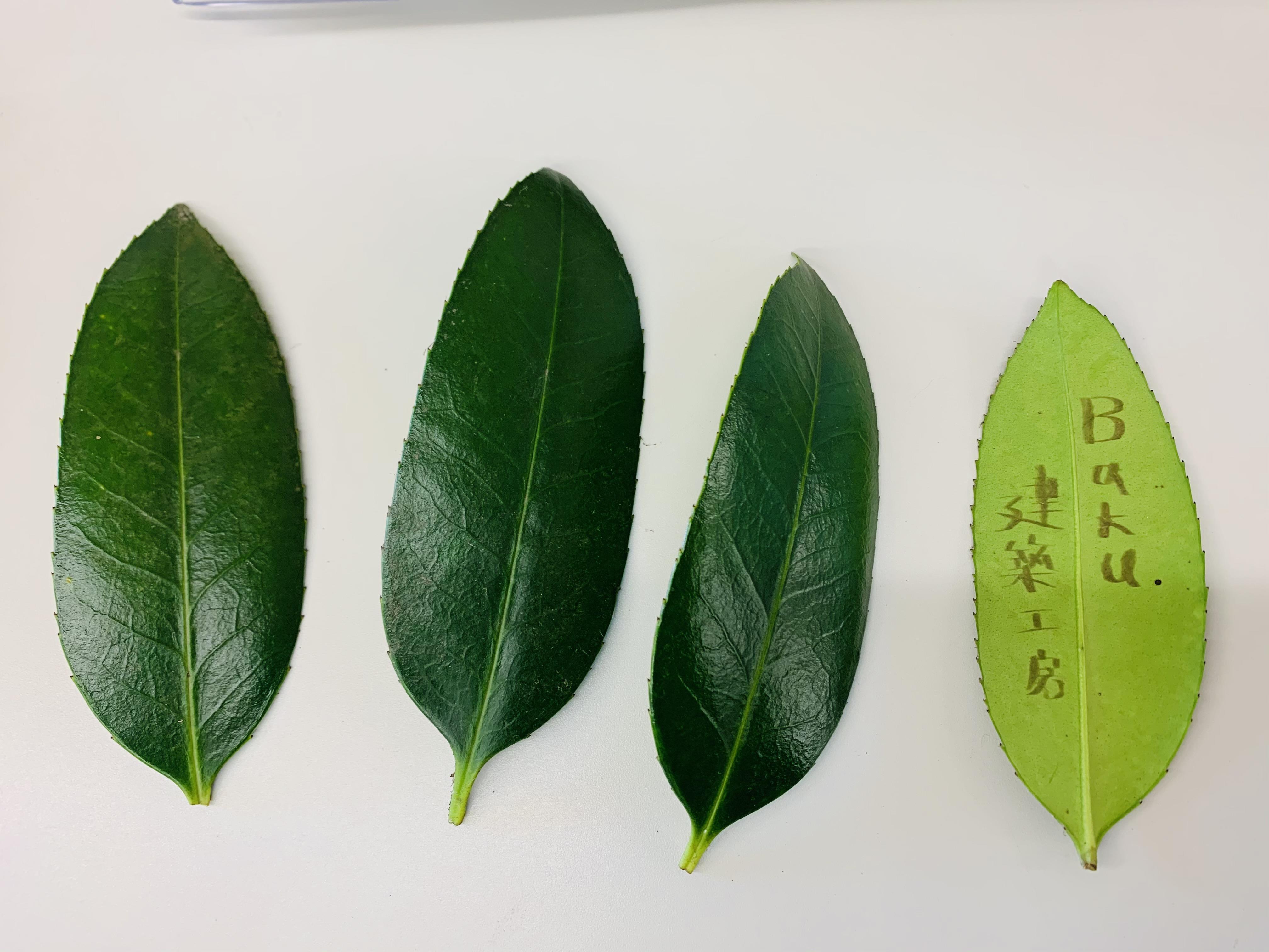 しっかりした厚い葉っぱの裏側に爪で字を書くと
