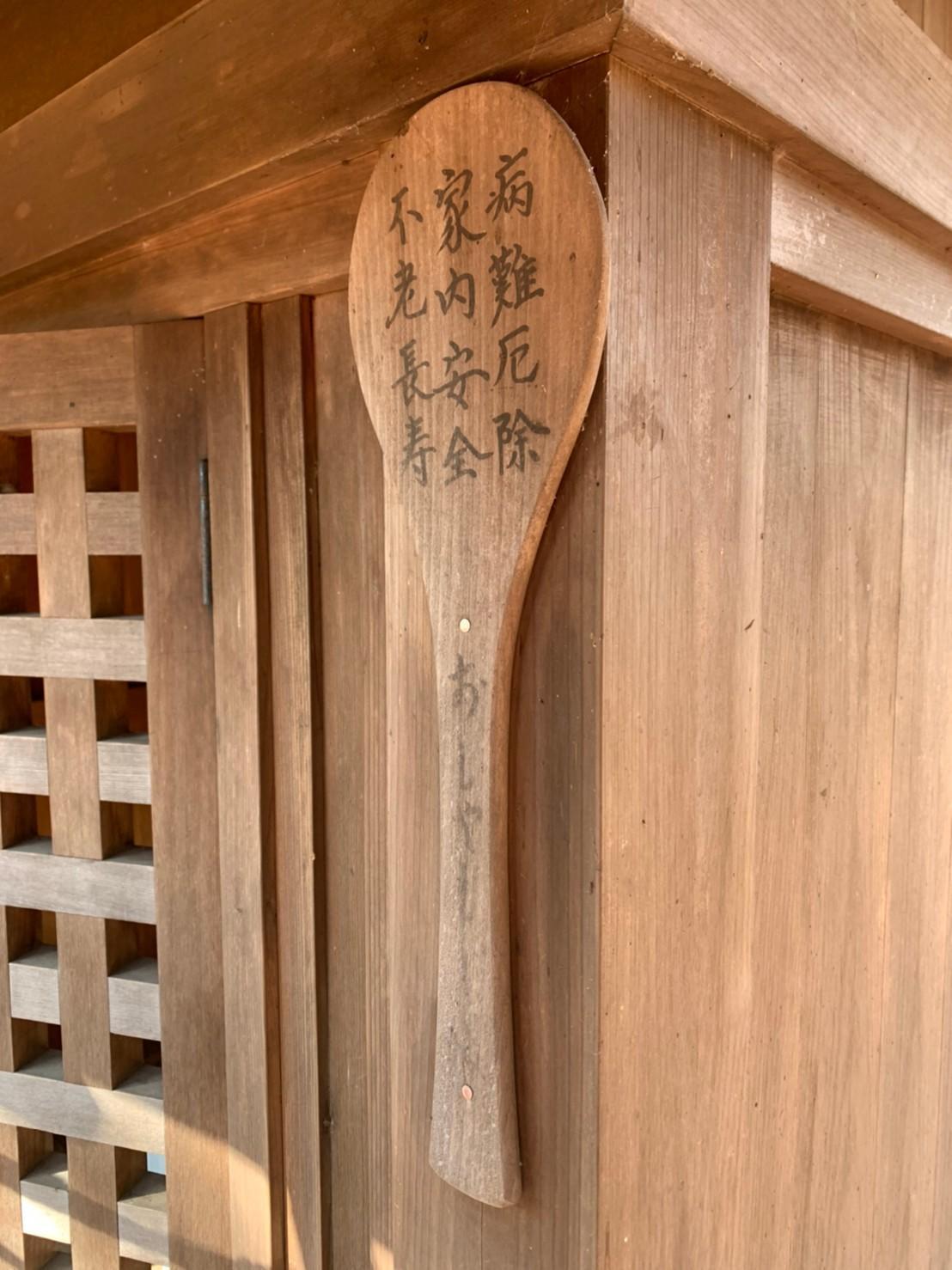 祠にある「しゃもじ」を借りてご飯を食べると百日咳が治ると言われ、