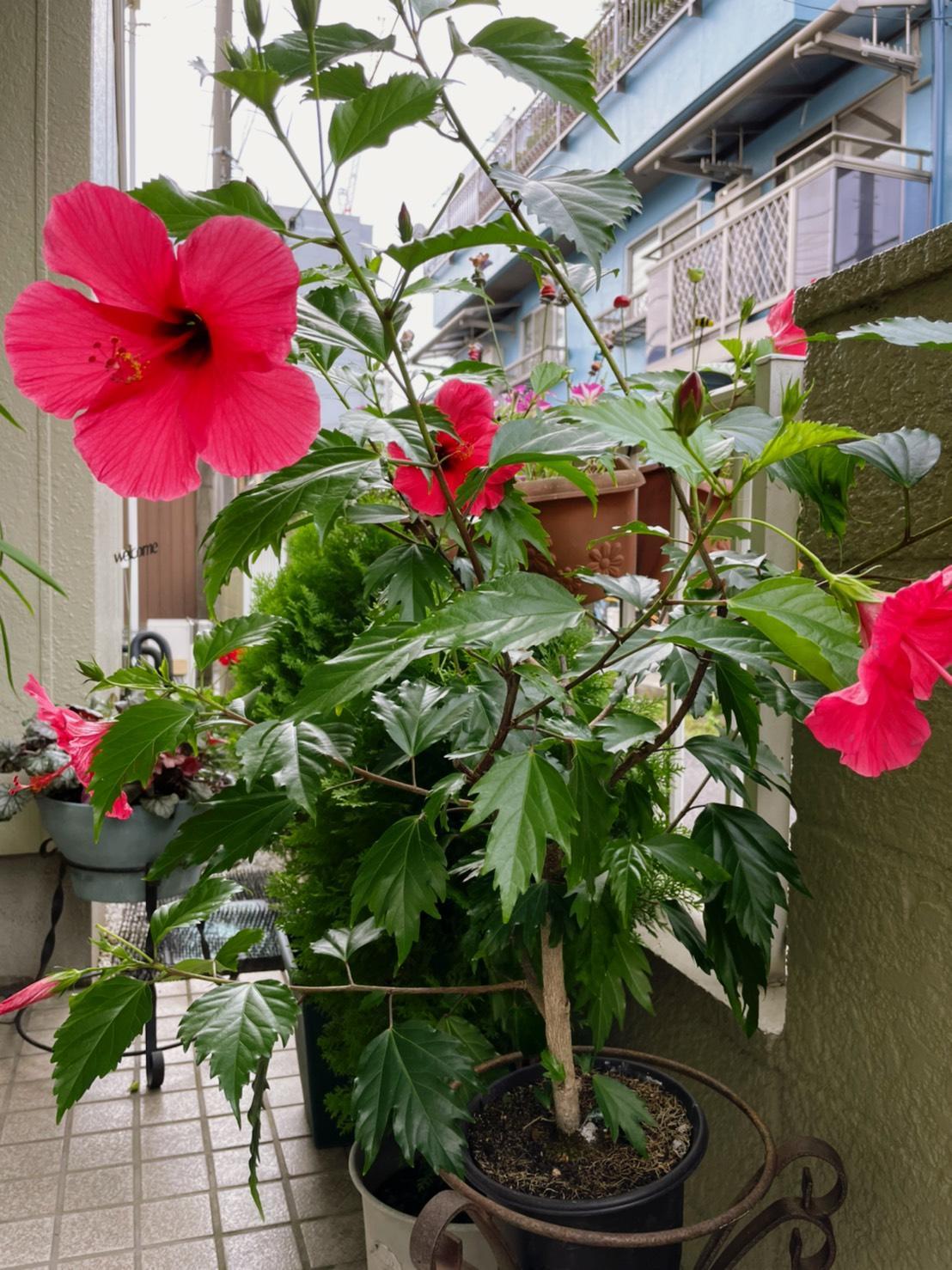 訪問先のお宅で、可愛らしいハイビスカスが咲いていました。