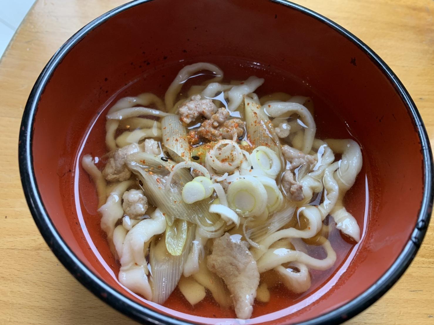 「もちもち」した麺にシイタケの出汁でおつゆを作りました